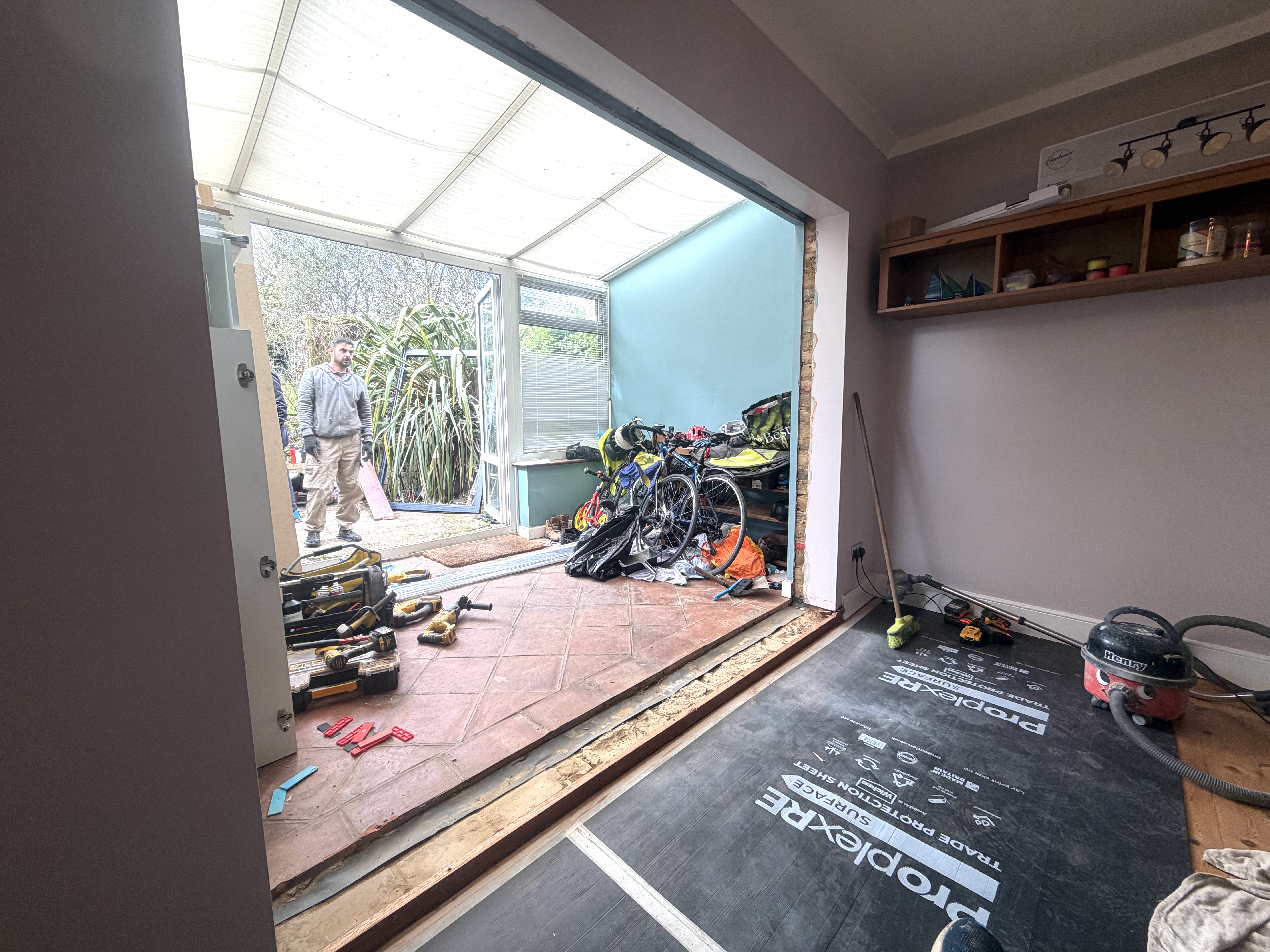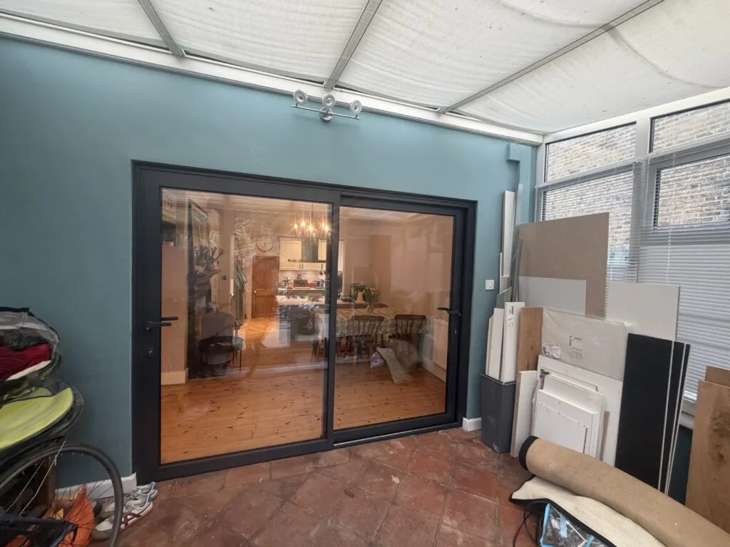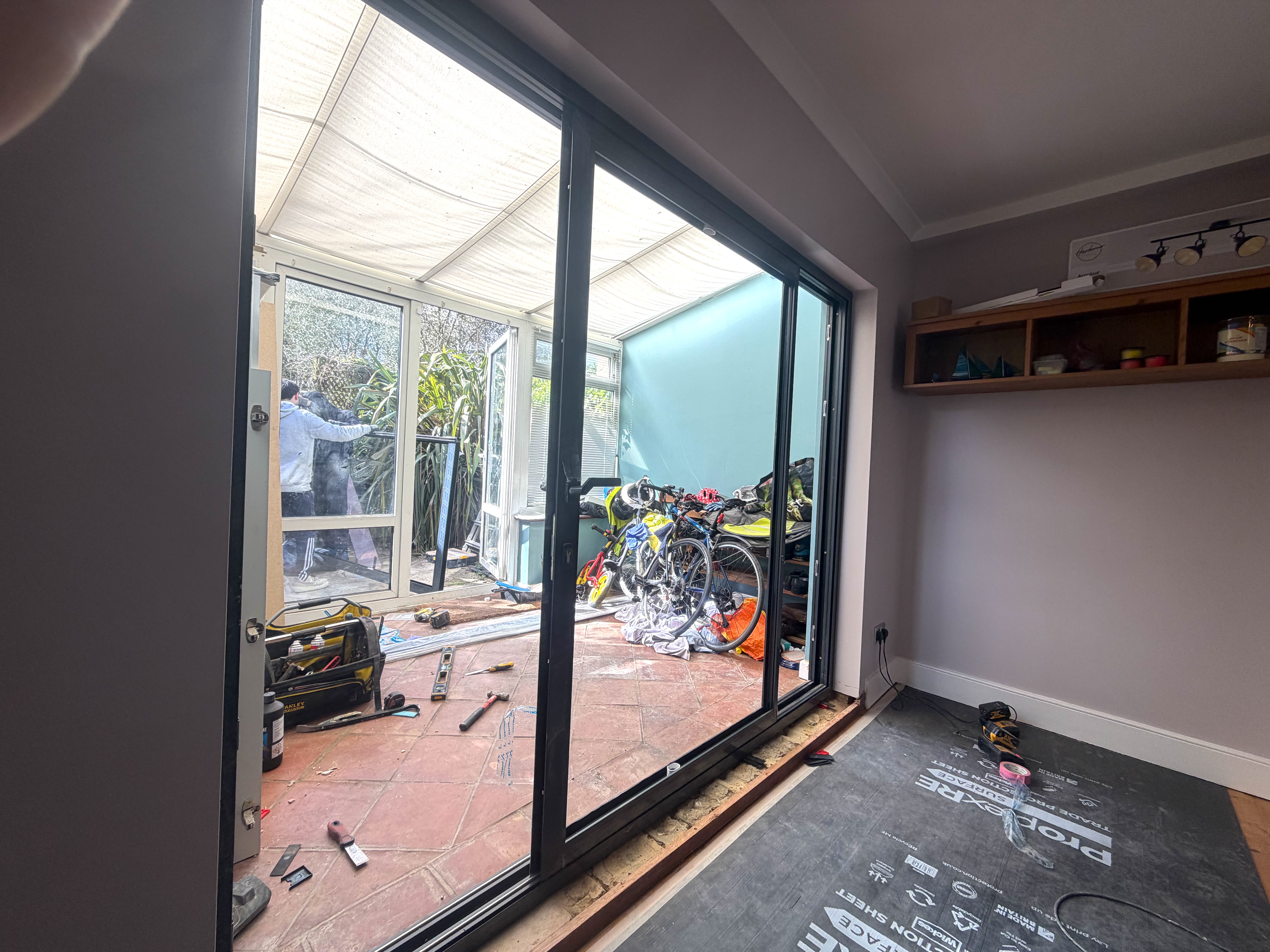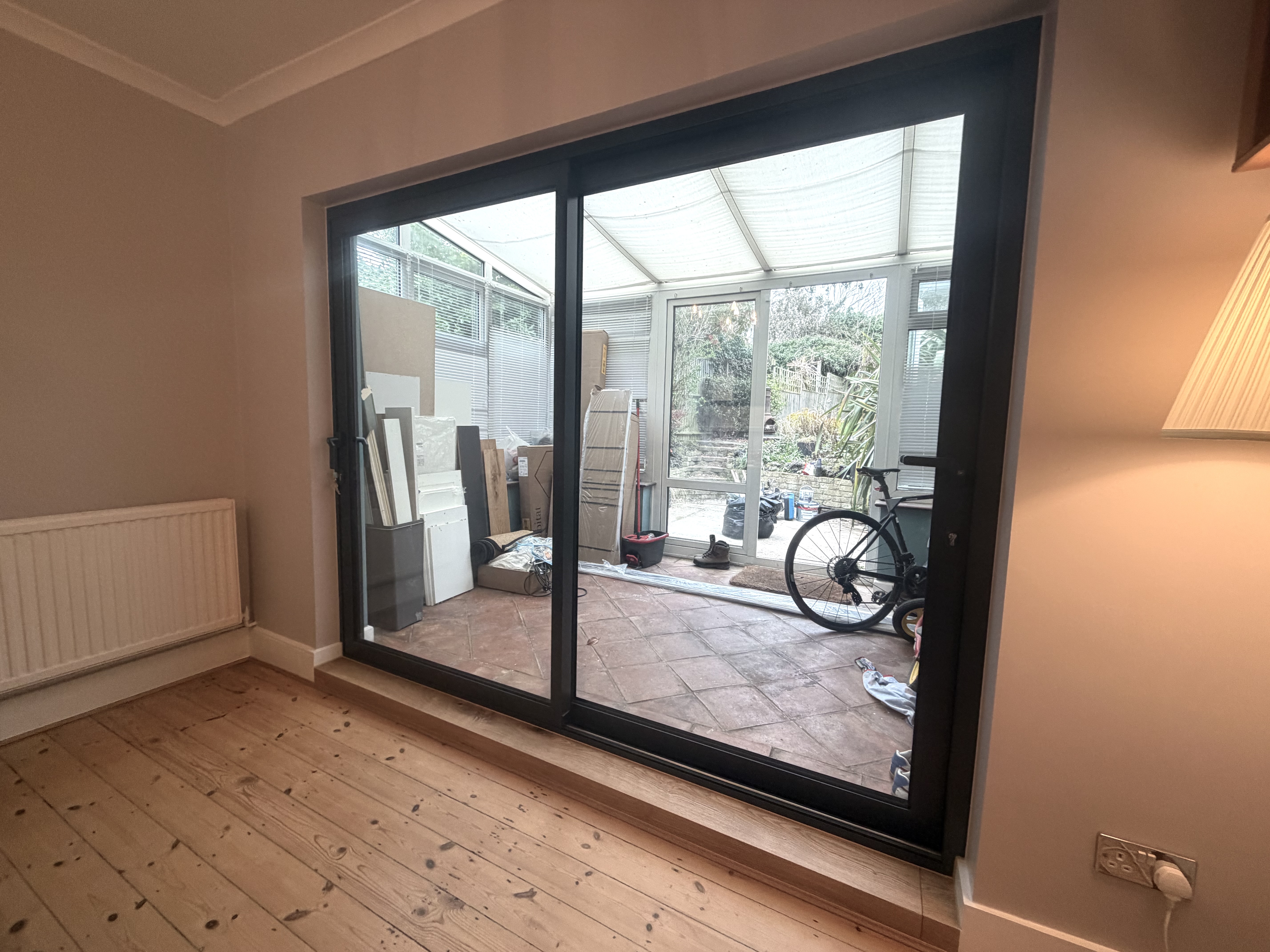 🏡 Seamless Indoor–Outdoor Living. The new sliding doors create a smooth transition between the interior and the conservatory, enhancing usability and visual connectivity with the garden.