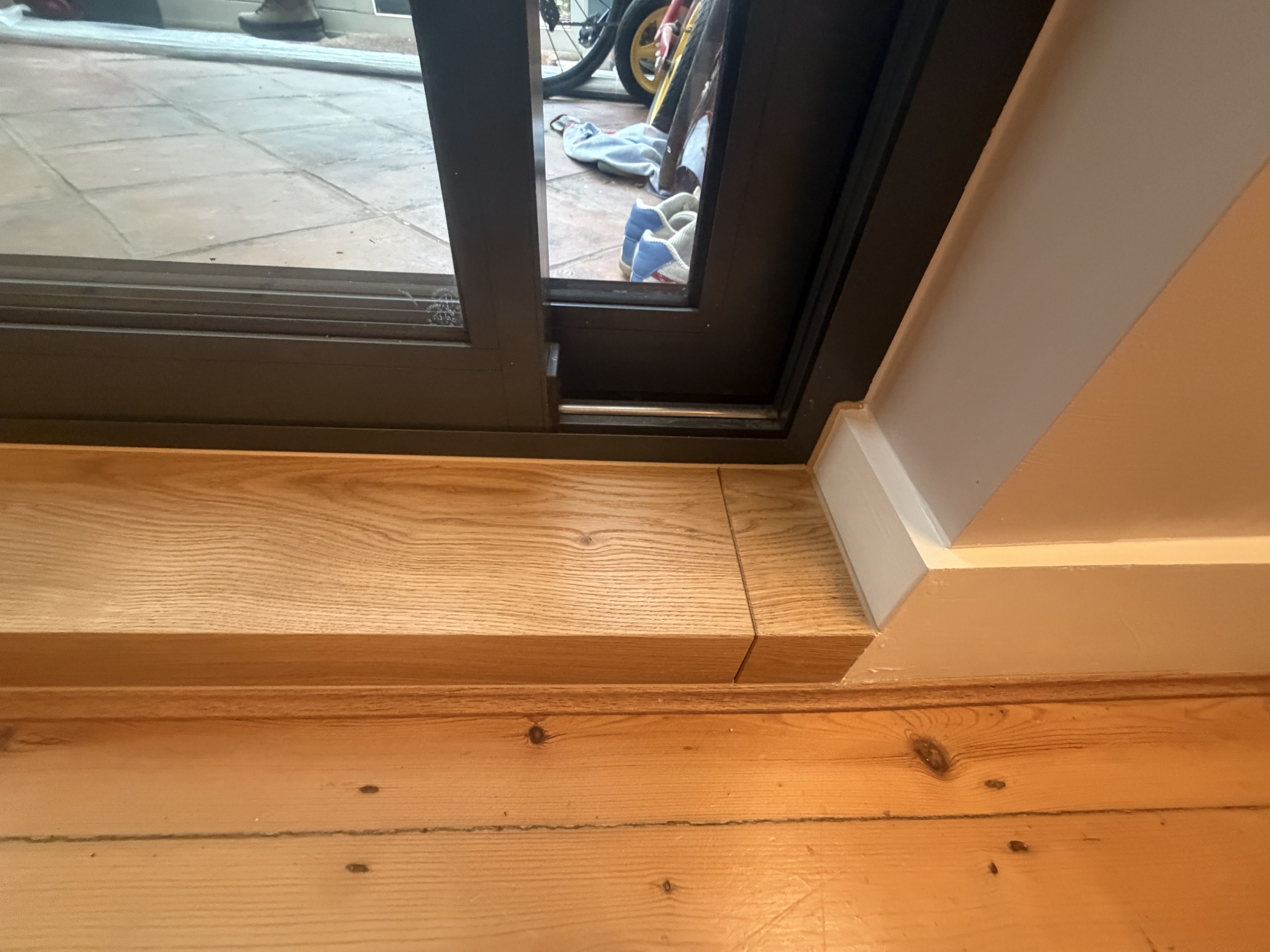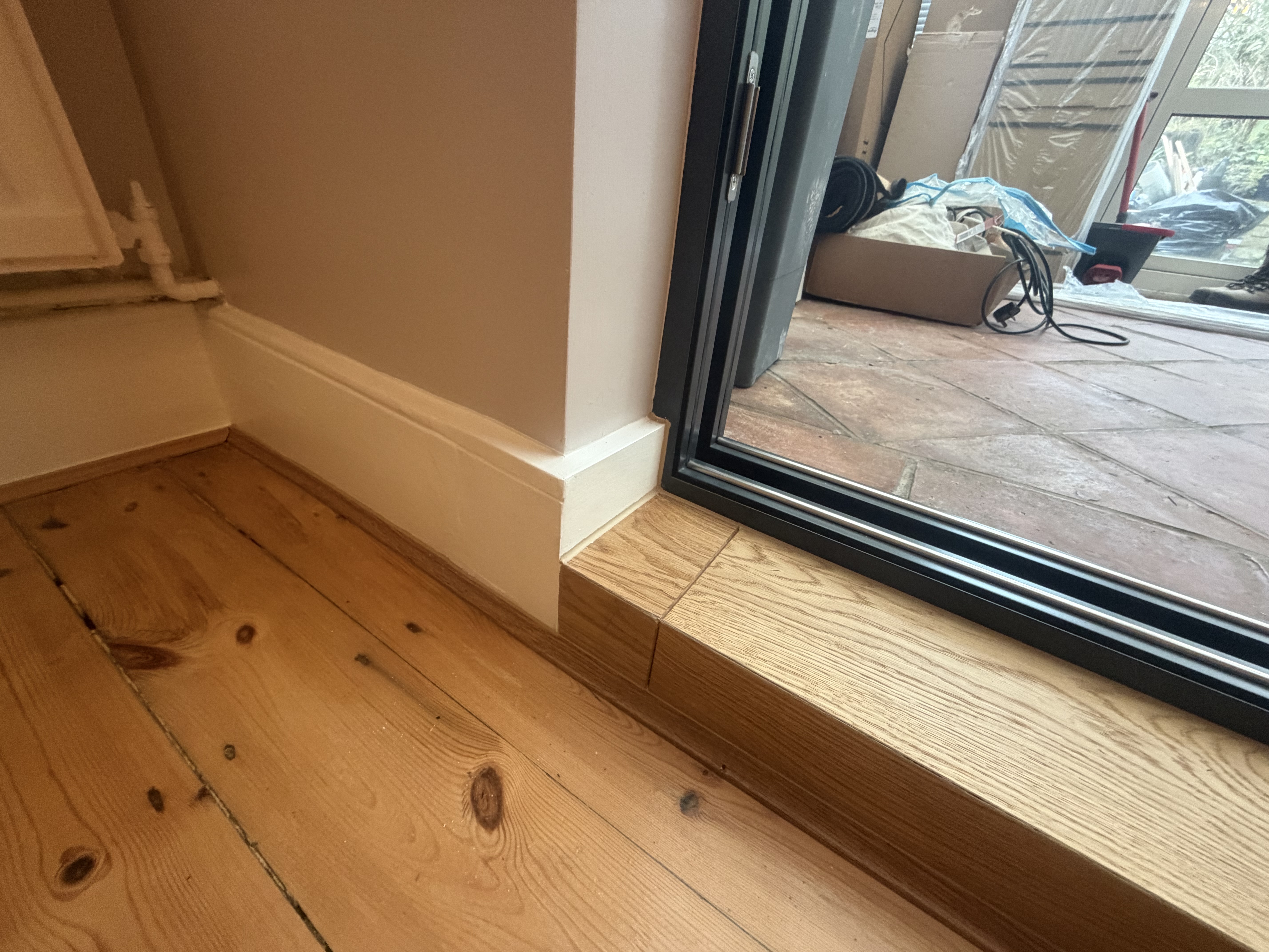 Crafting and installation of a custom oak internal sill, delivering a warm and elegant interior finish.