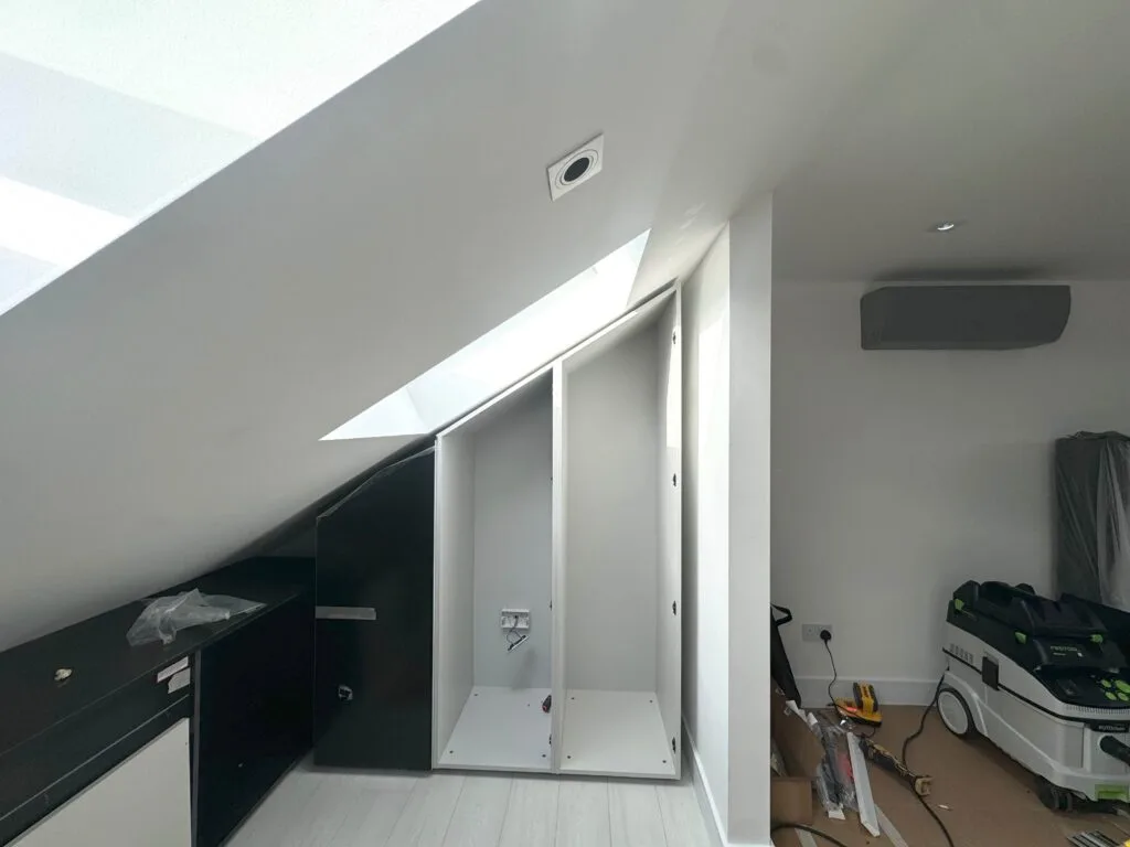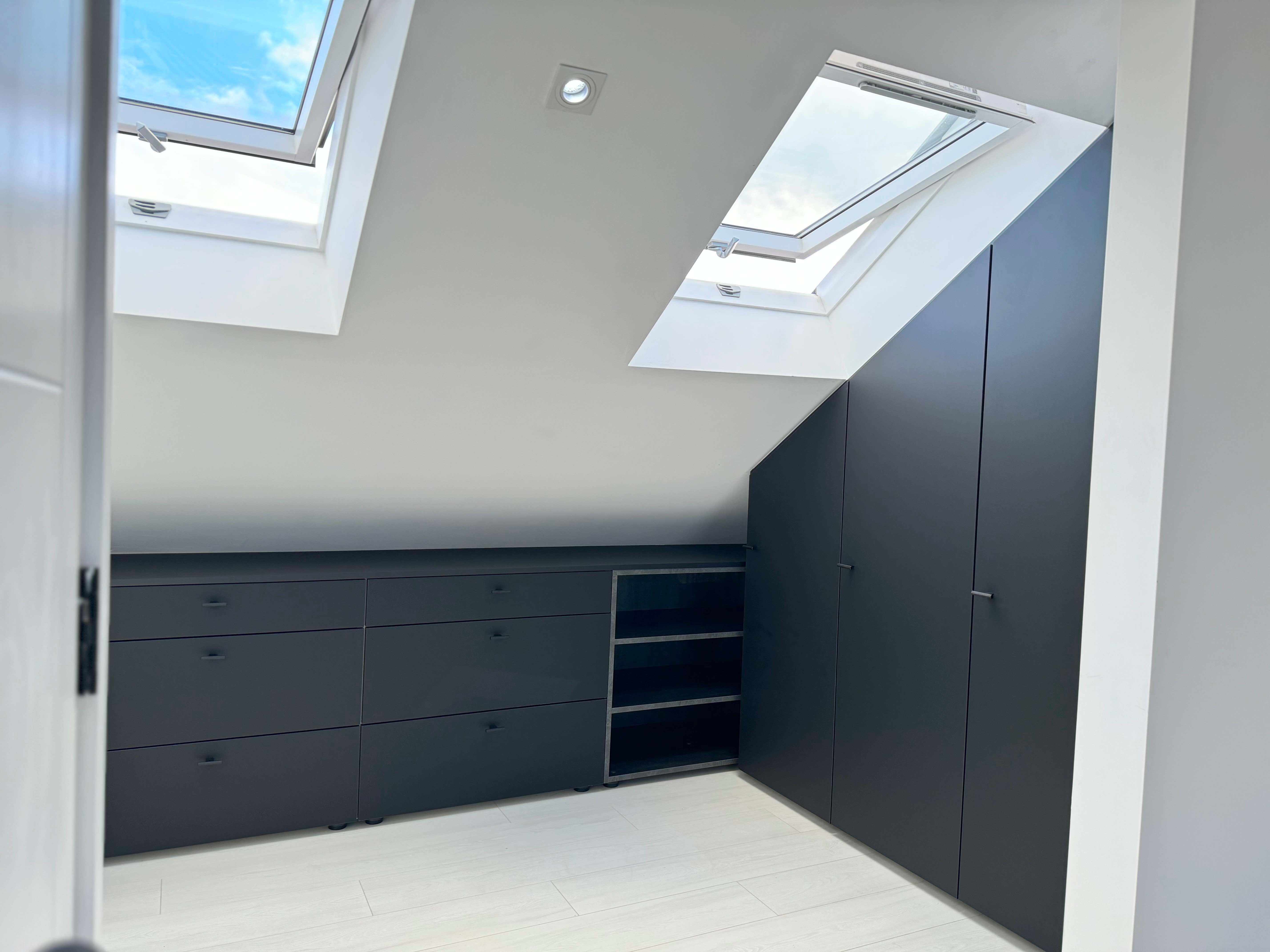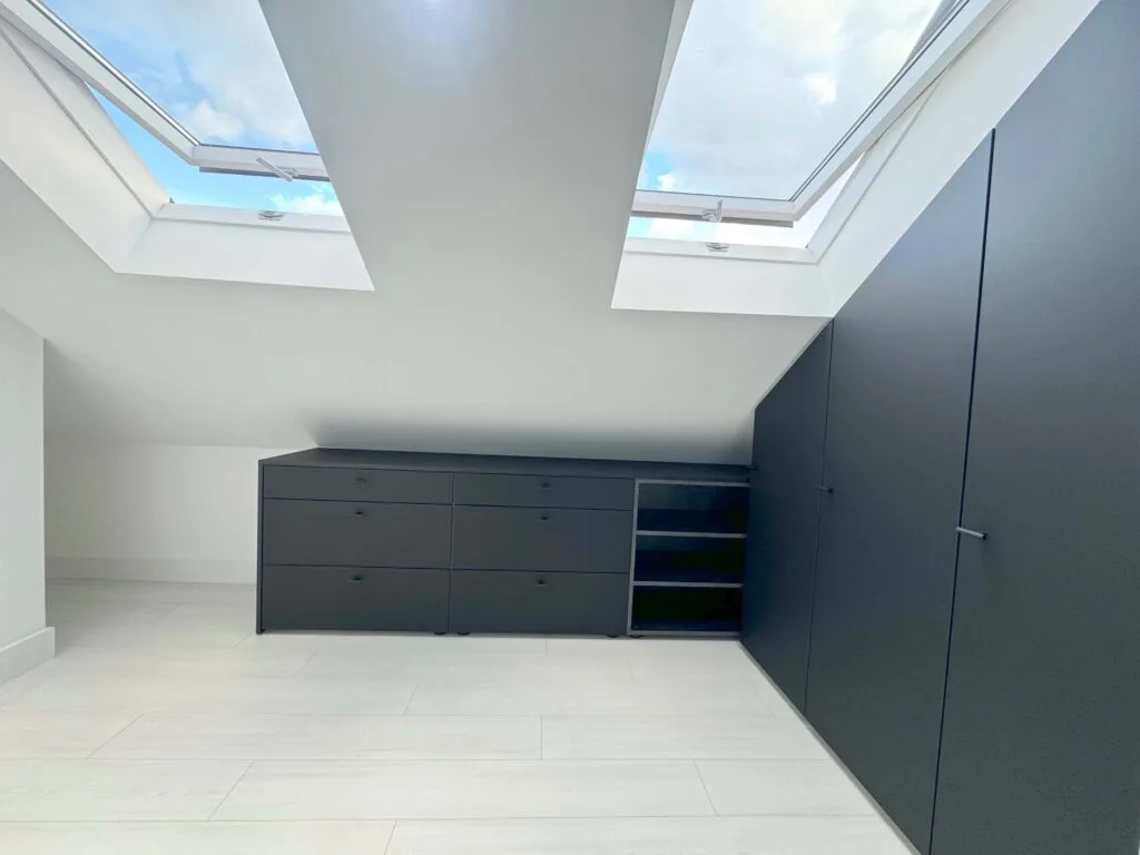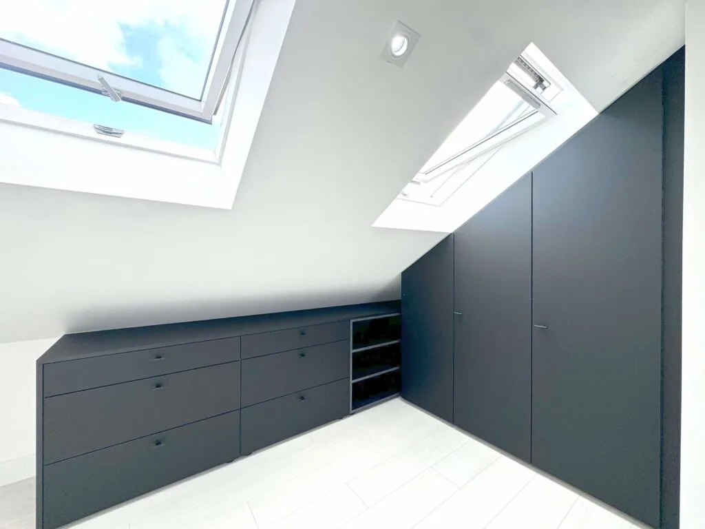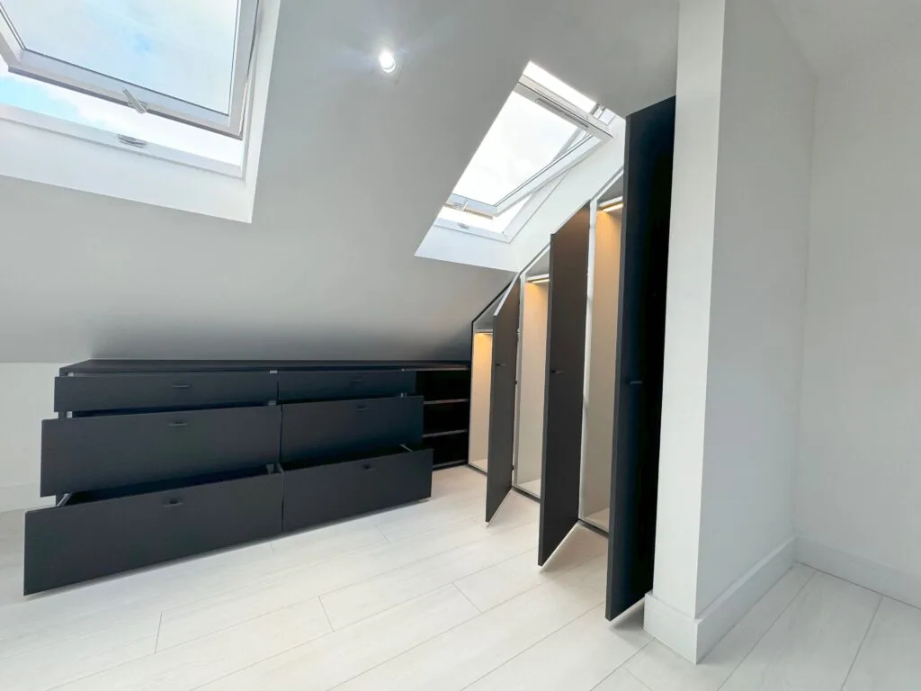 Unlock the full potential of your unique spaces with our premium angled wardrobe installation services. Tailored for challenging layouts—such as rooms with sloped ceilings, attic alcoves, and under-stair nooks—our custom wardrobe solutions combine elegance with optimised functionality.
