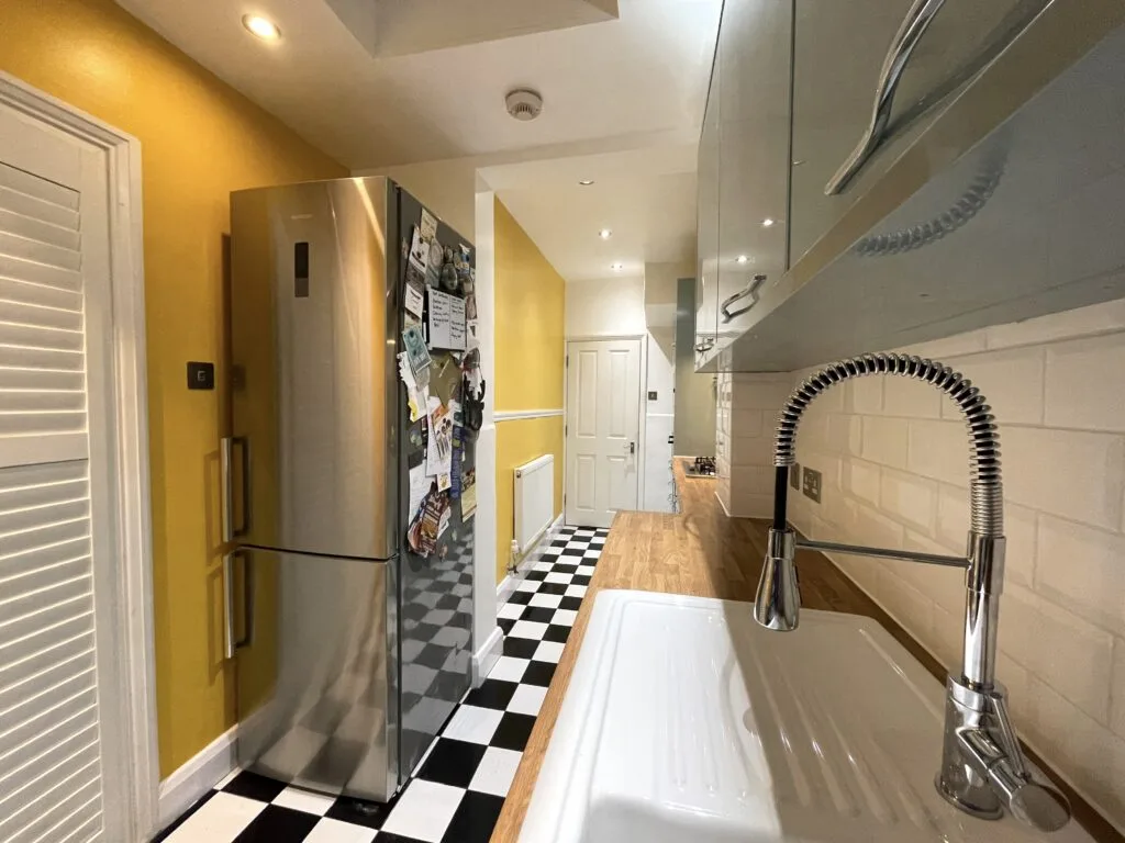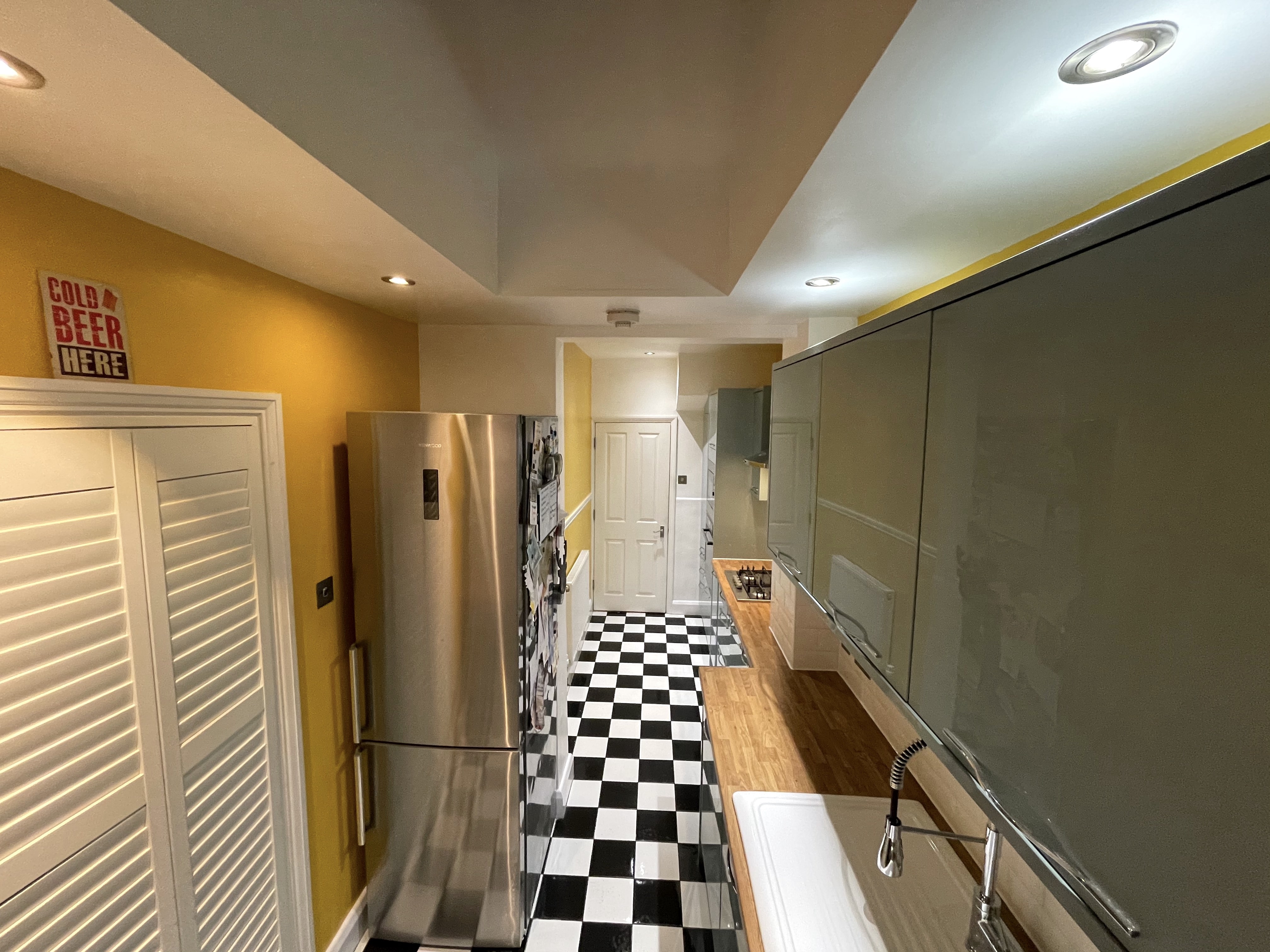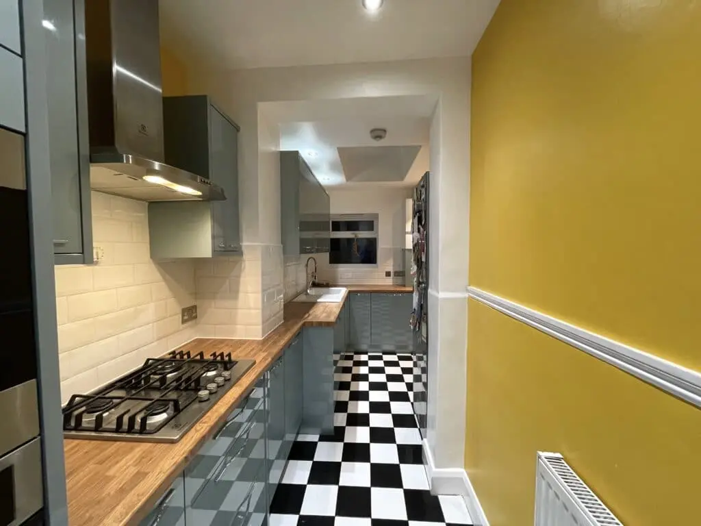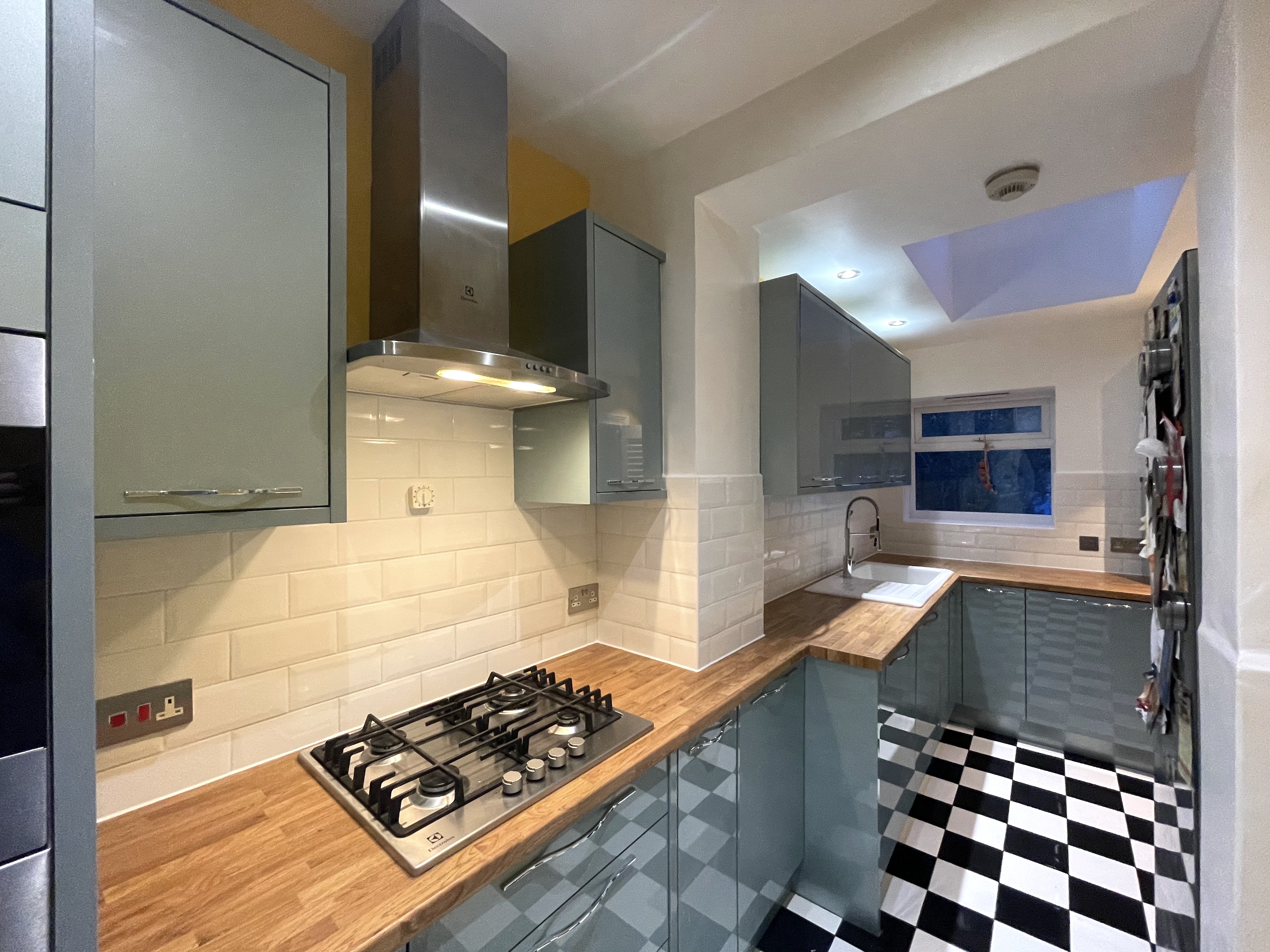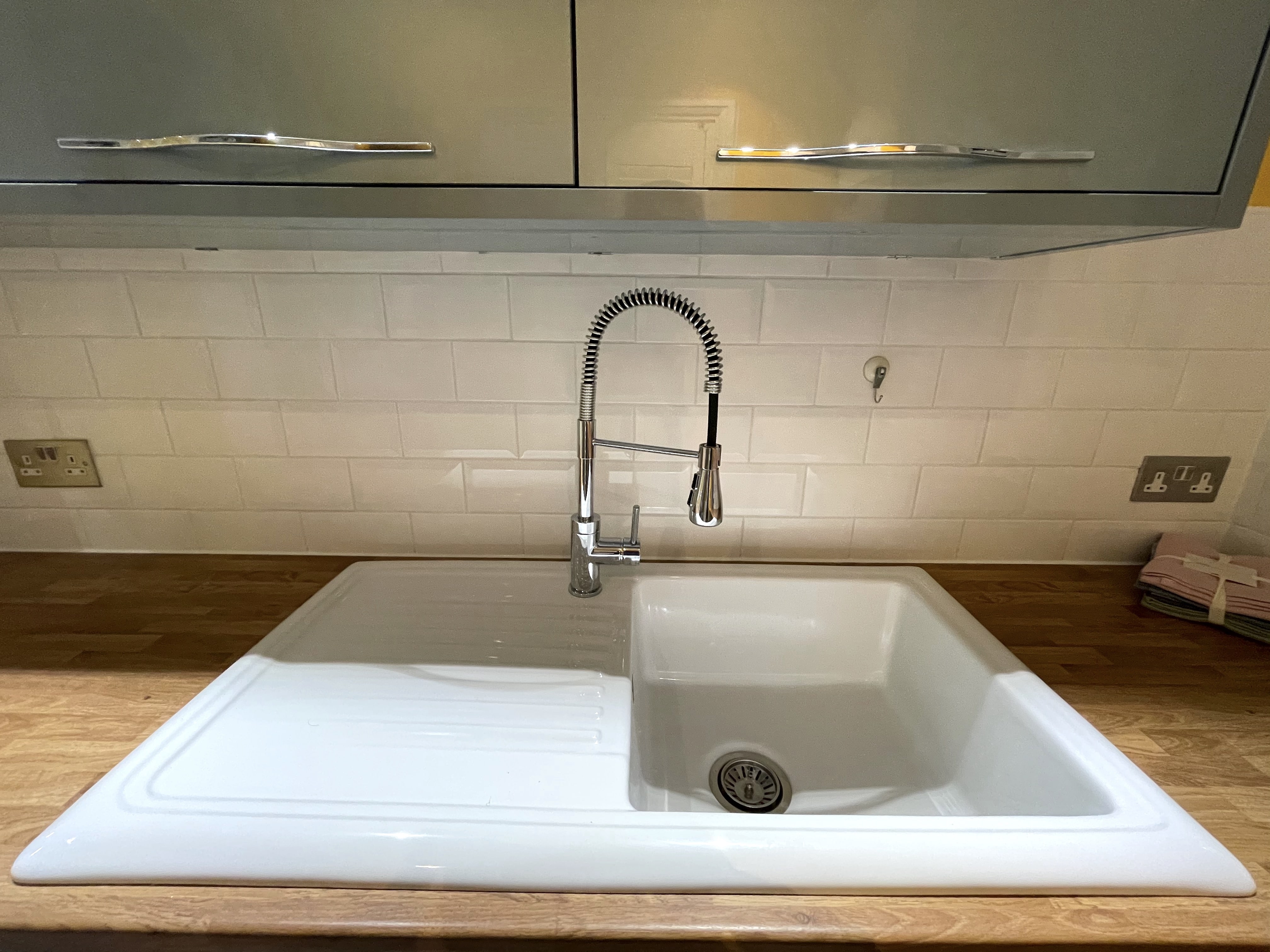 During 2 weeks we also refreshed kitchen with new grout, new worktops, sink and tap, boxed in Combi Boiler matching existing kitchen furniture.