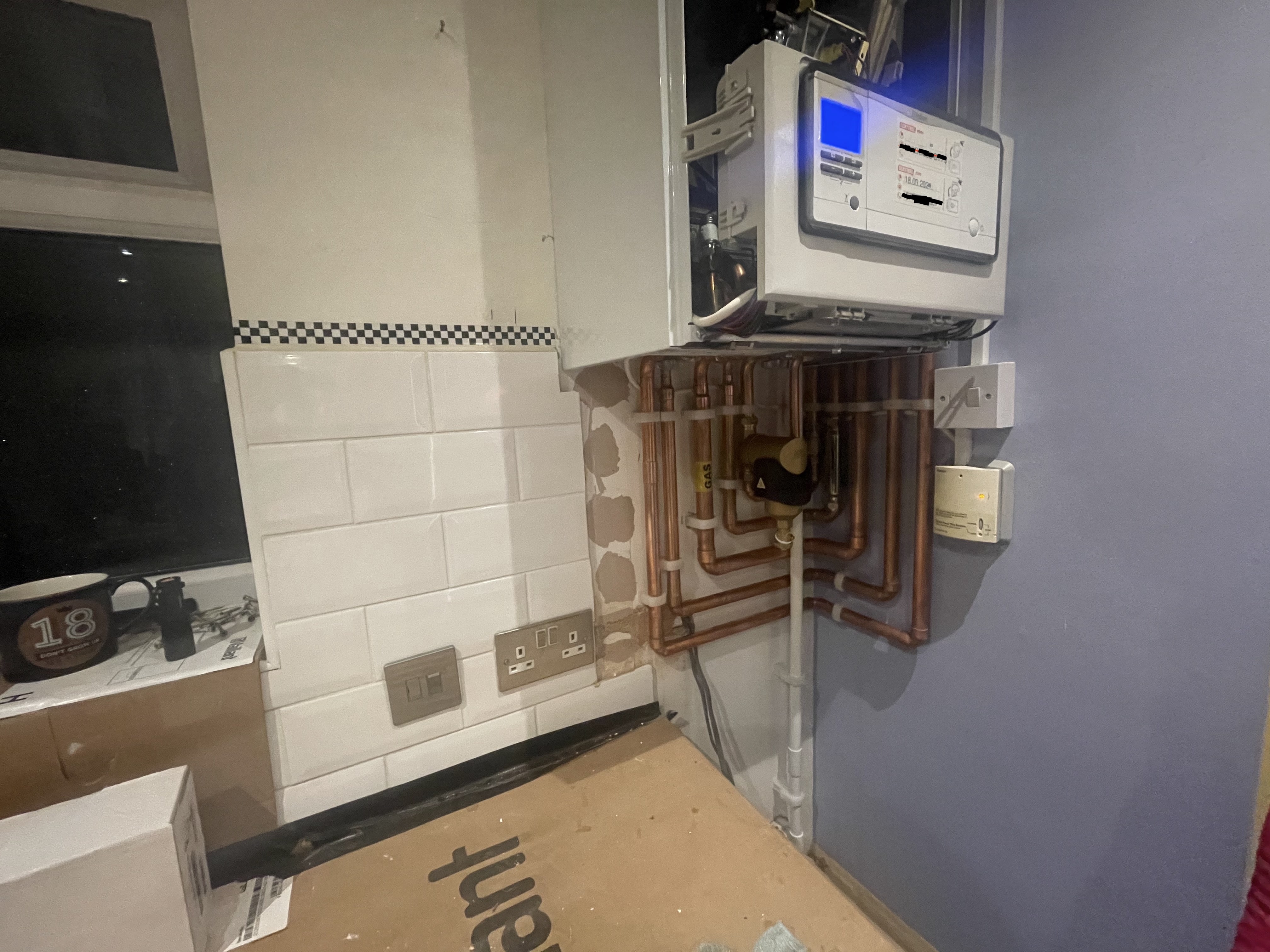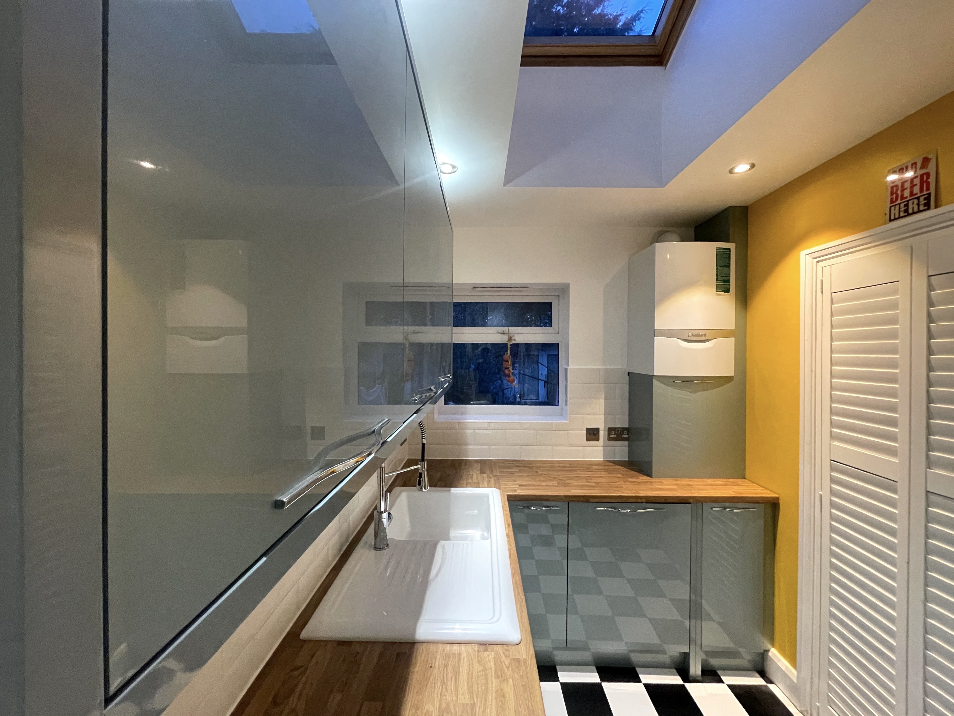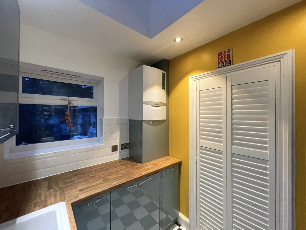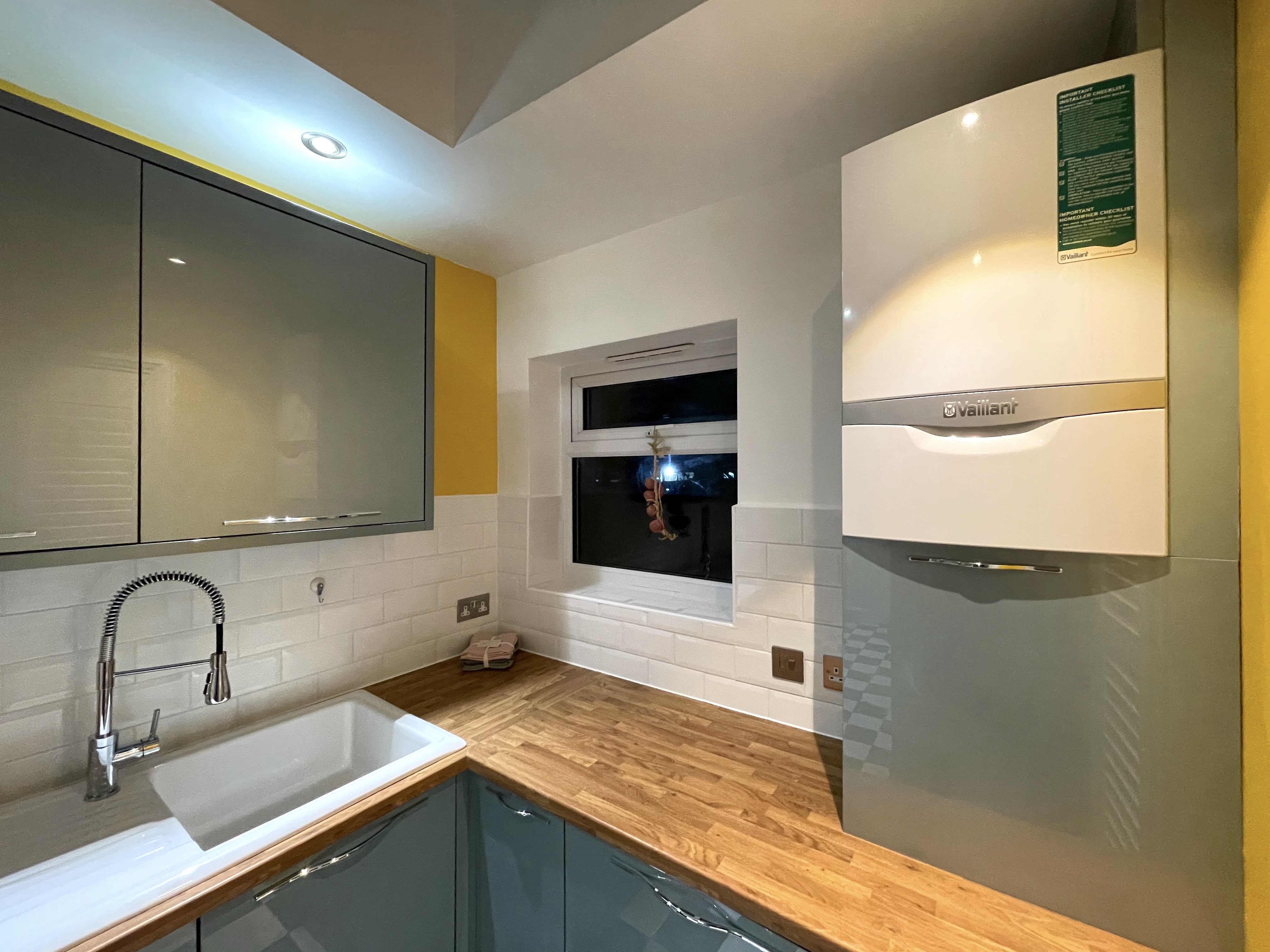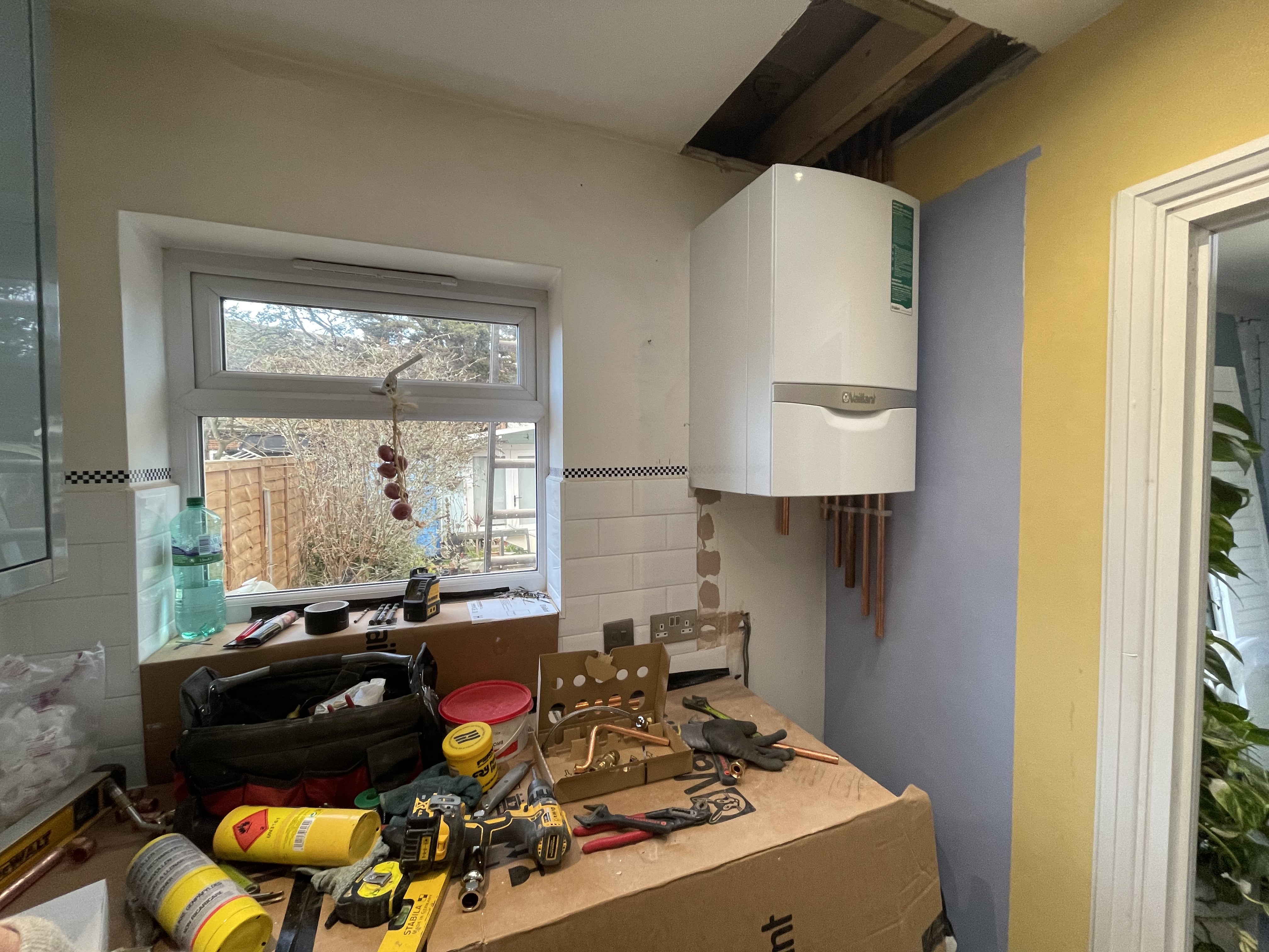 Here is our next successful project(s) and pleased happy customer. We did 3 jobs in one go within 14 days from start this March. We started with bathroom renovation and after demolition we had given our opinion what can be done as extra work to bring better look with more space for existing bathroom. So same time we started with boiler replacement where we updated existing boiler to the Combi/Vaillant and installed it in the kitchen with access panel matching existing kitchen furniture.