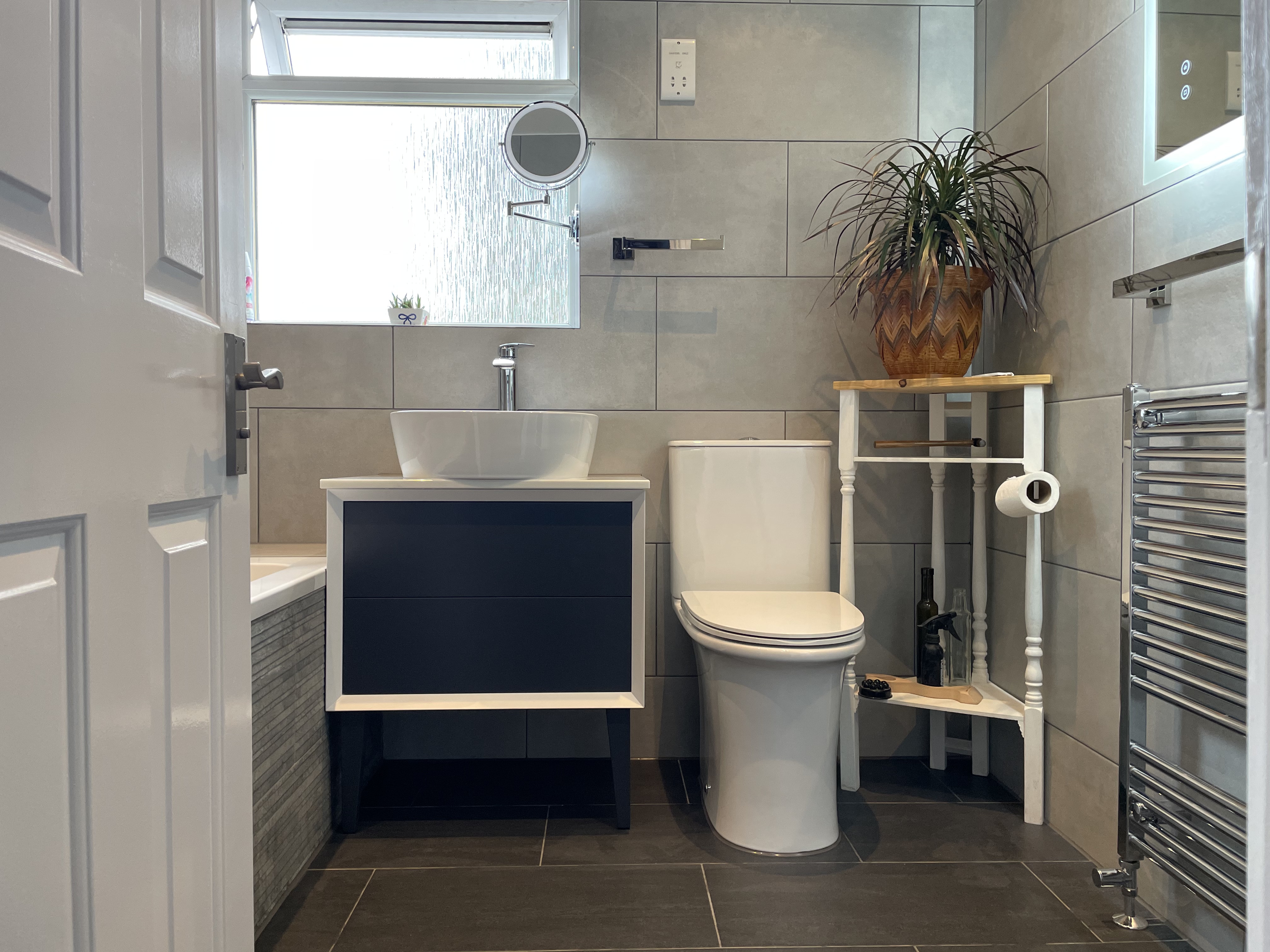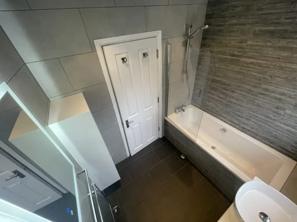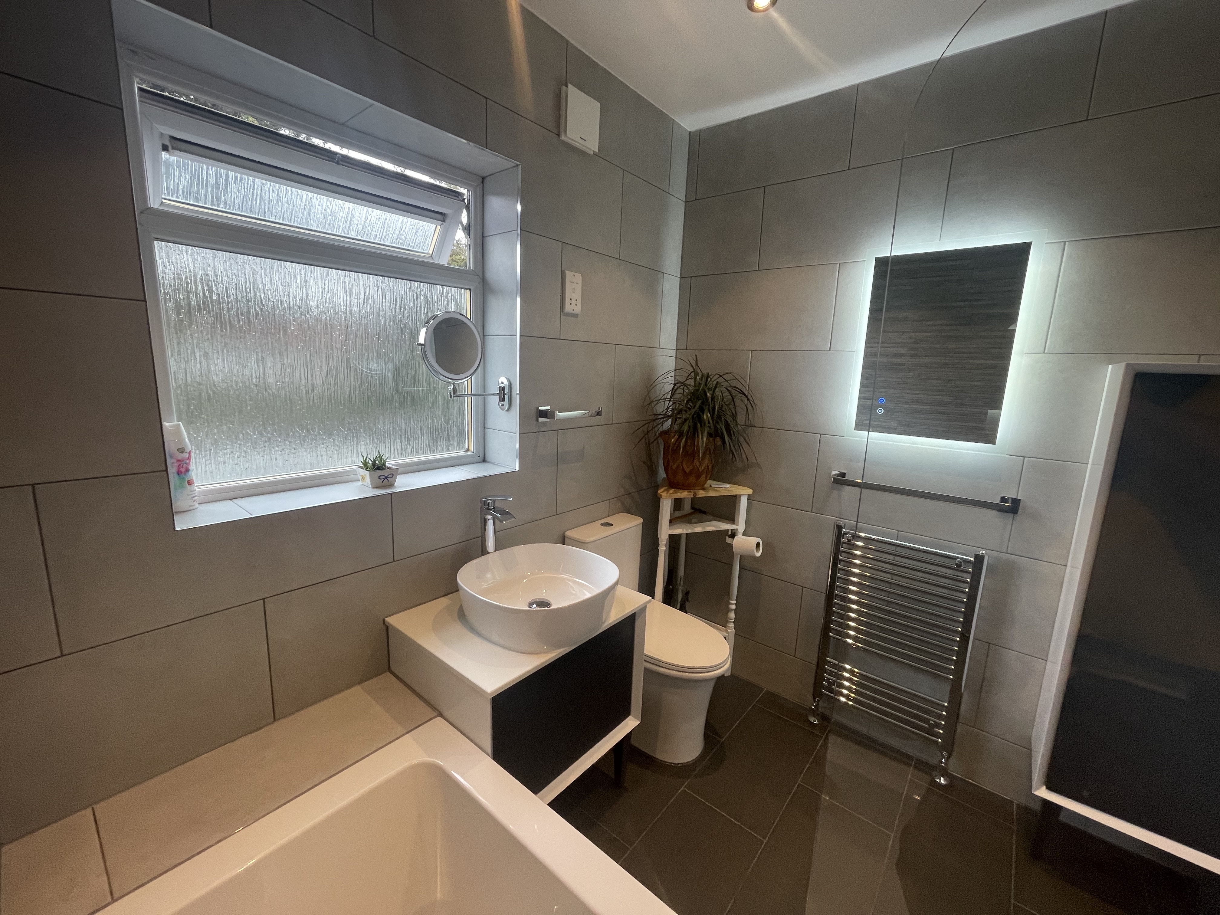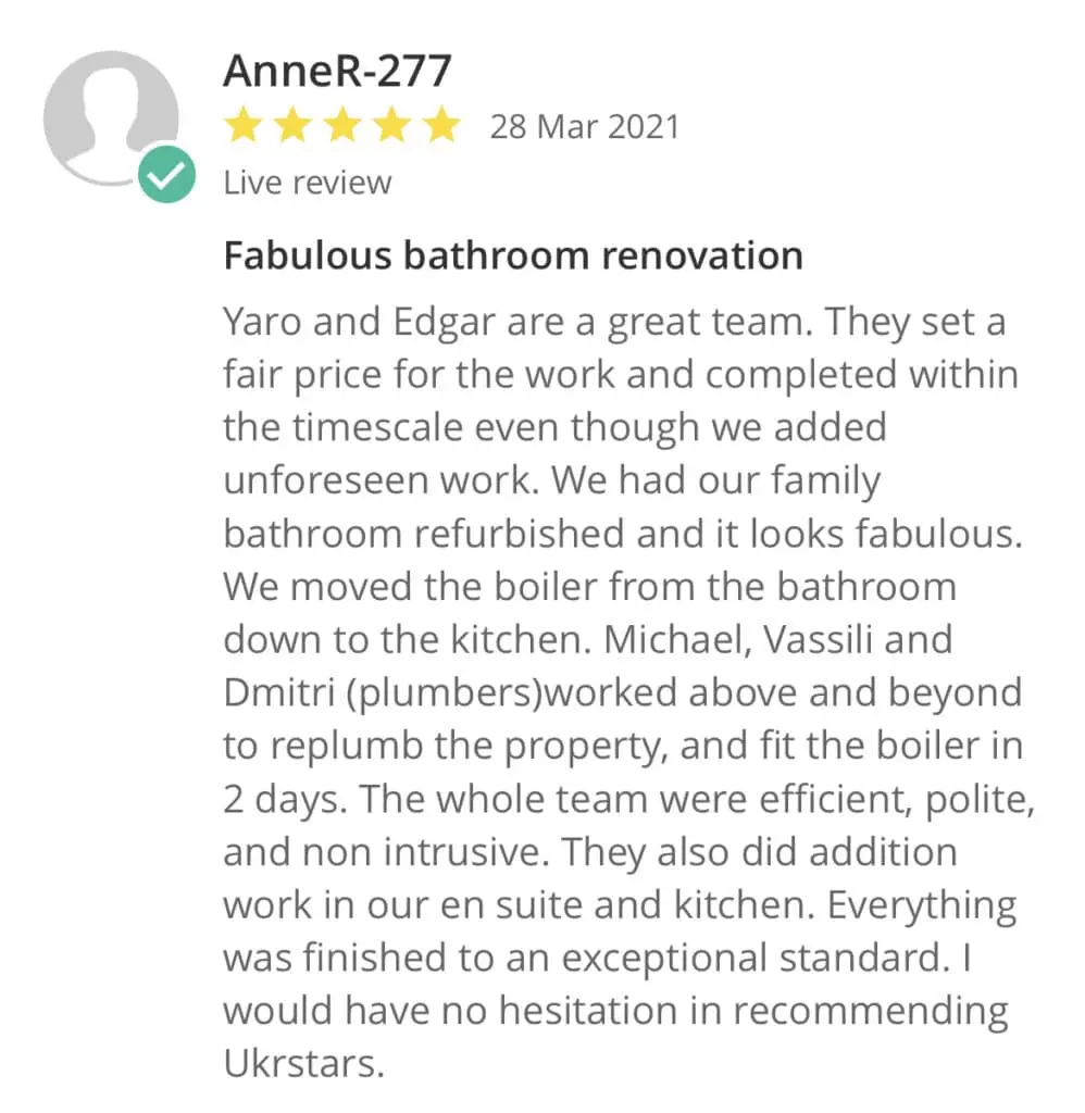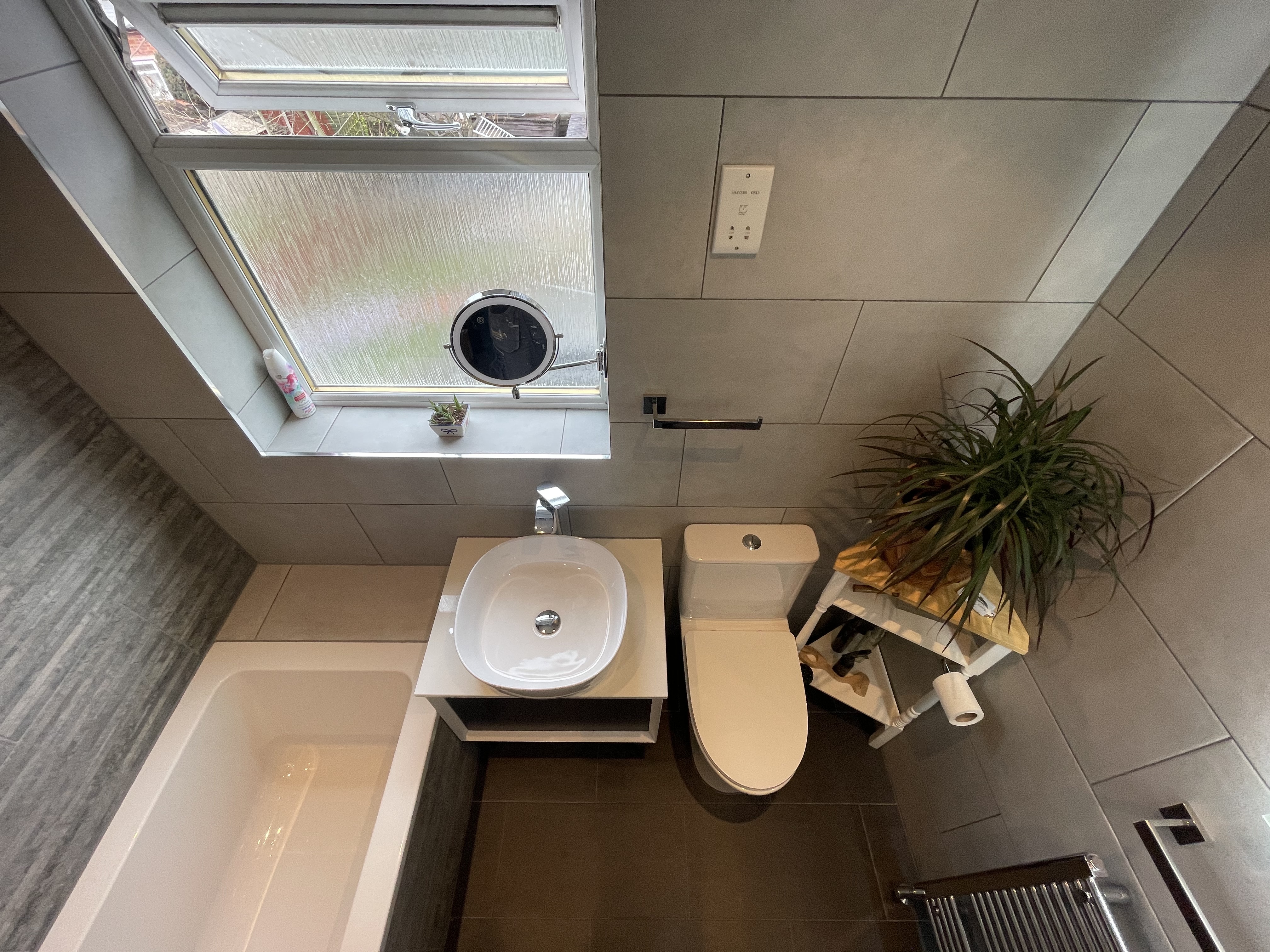 Here is our next successful project(s) and pleased happy customer. We did 3 jobs in one go within 14 days from start this March. We started with bathroom renovation and after demolition we had given our opinion what can be done as extra work to bring better look with more space for existing bathroom. So same time we started with boiler replacement where we updated existing boiler to the Combi/Vaillant and installed it in the kitchen with access panel matching existing kitchen furniture.