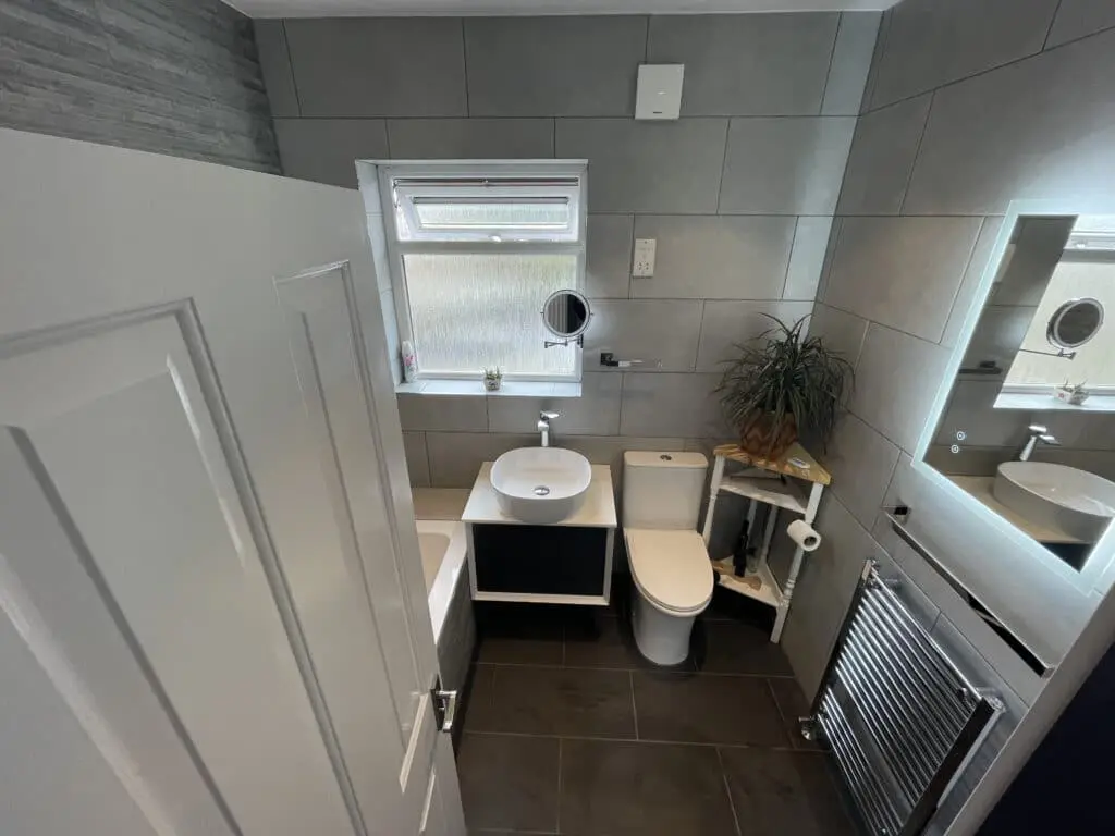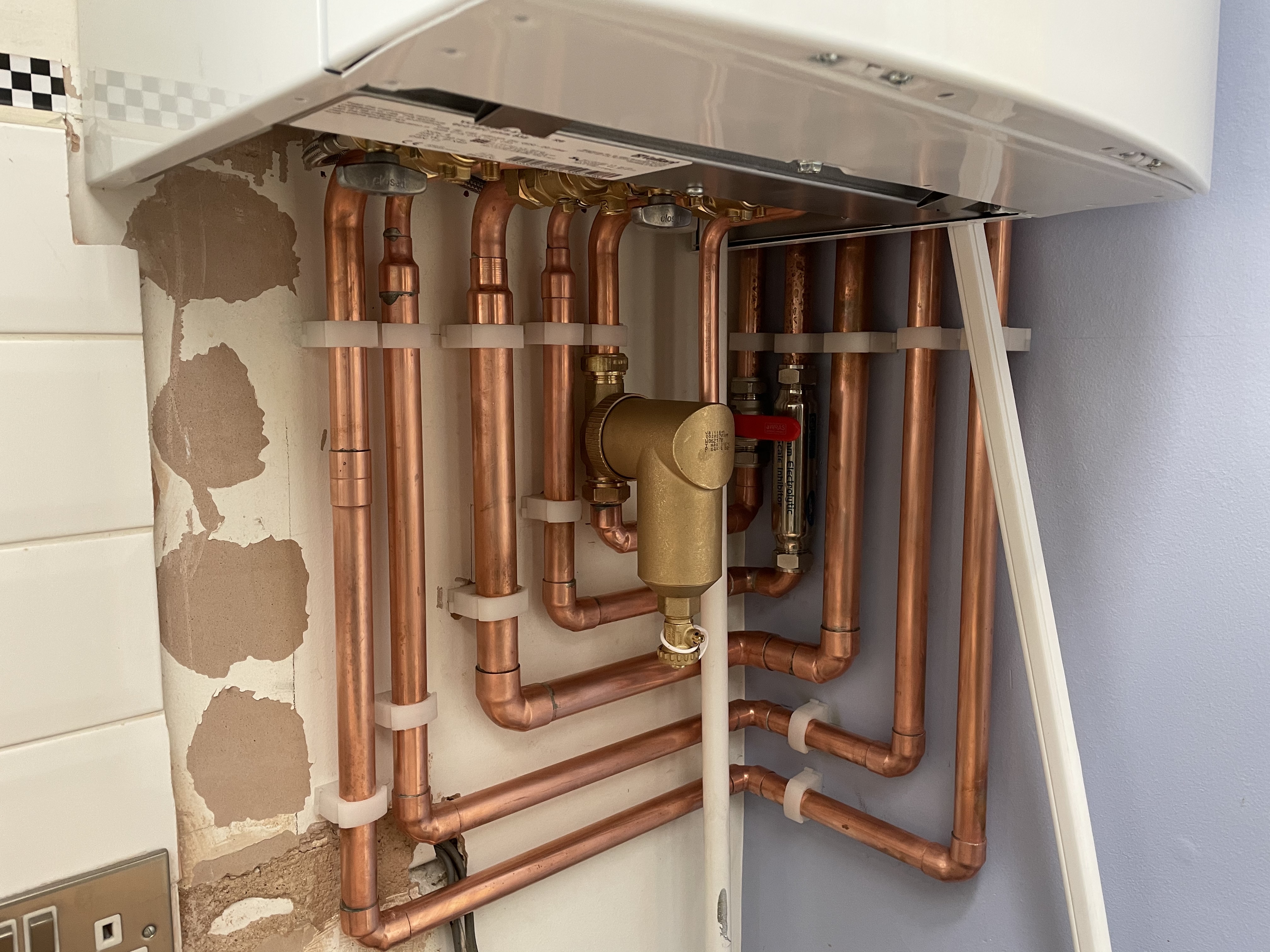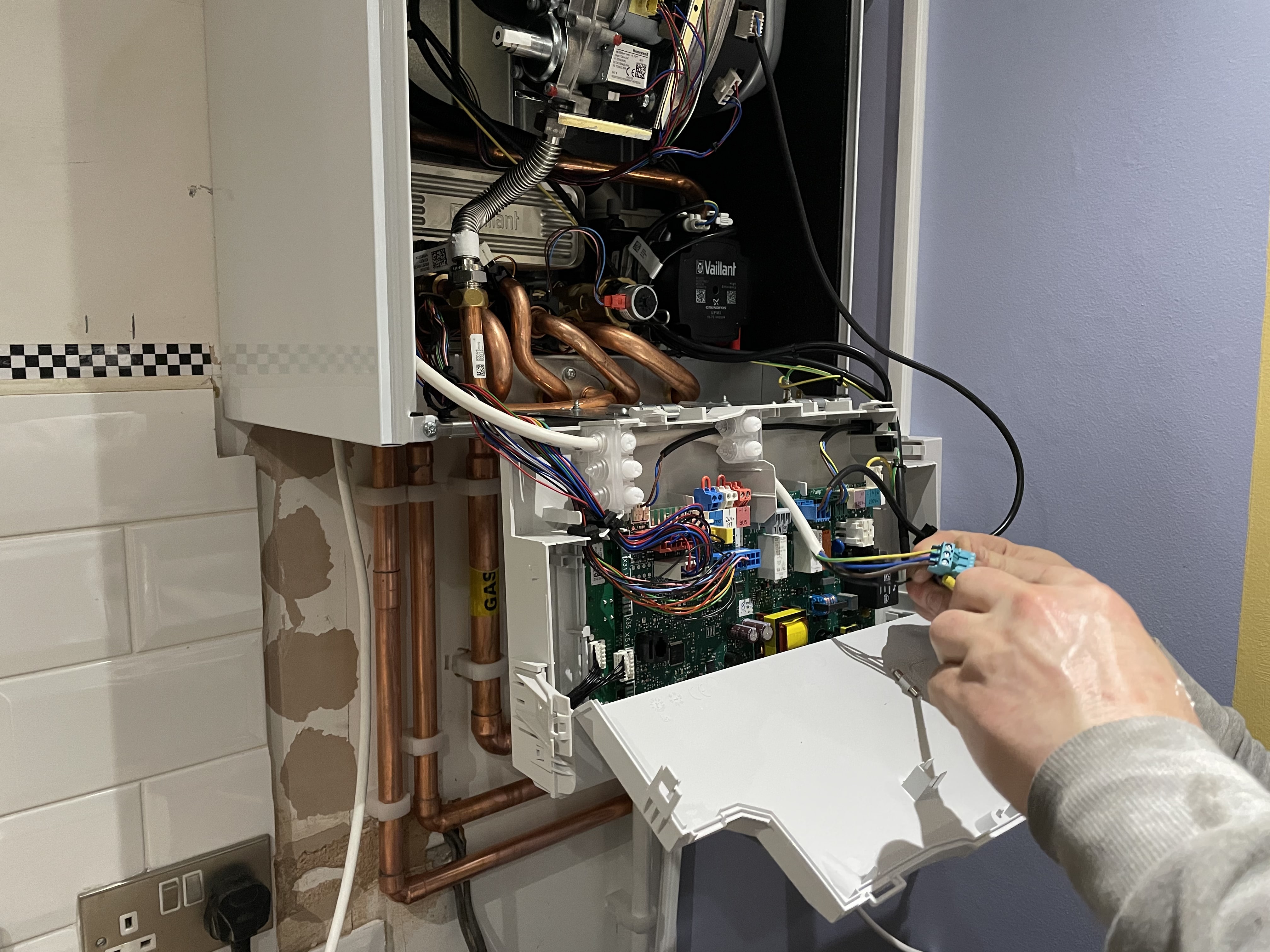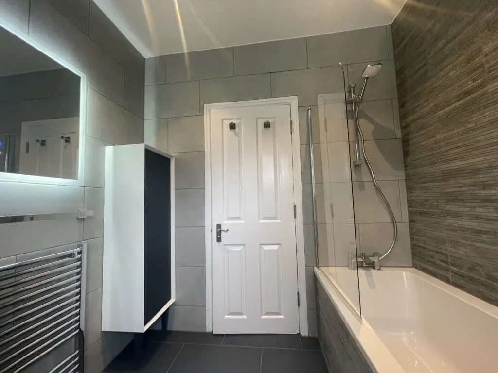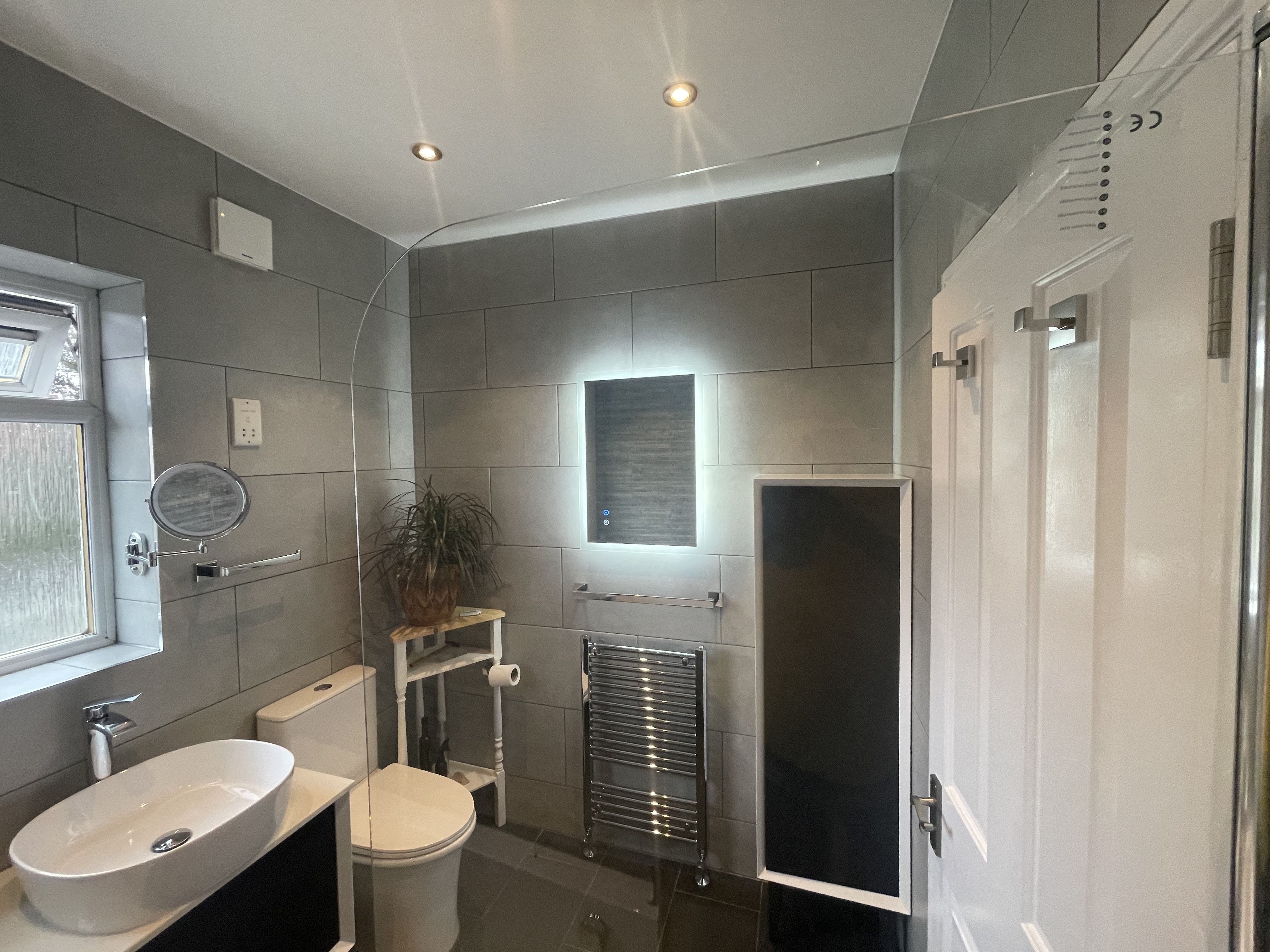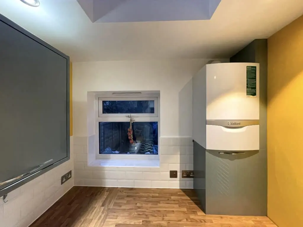 Here is our next successful project(s) and pleased happy customer. We did 3 jobs in one go within 14 days from start this March. We started with bathroom renovation and after demolition we had given our opinion what can be done as extra work to bring better look with more space for existing bathroom. So same time we started with boiler replacement where we updated existing boiler to the Combi/Vaillant and installed it in the kitchen with access panel matching existing kitchen furniture.
