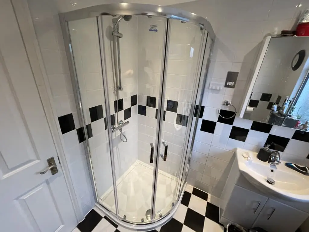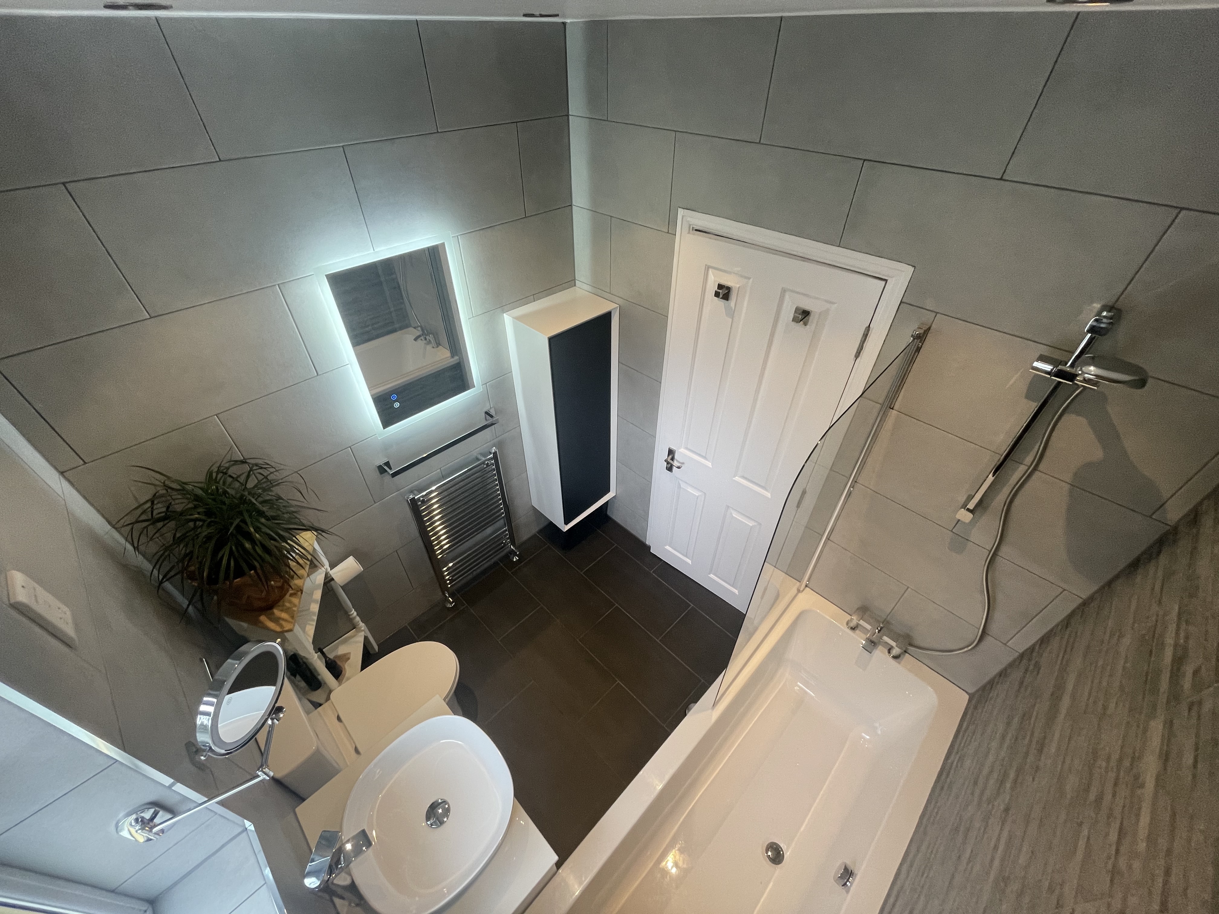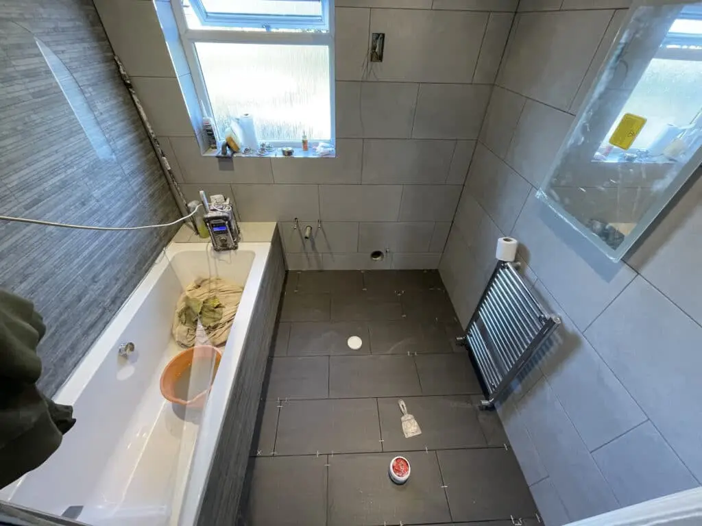 Apparently when we used utility room on the second floor, we found other problems. To avoid further damages in the future for the bathroom being currently under construction we did offer to replace existing shower cabin and upgrade with same style of tiles matching existing utility/shower room.