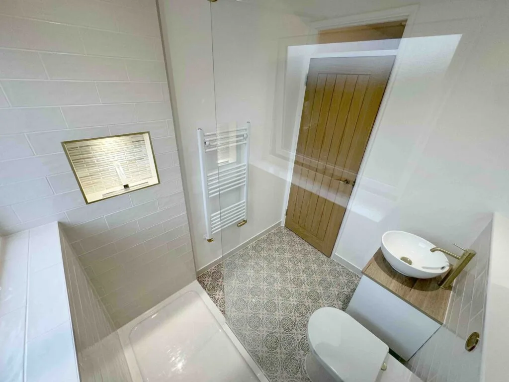 🔍 Tiles were installed onto marine plywood without any waterproofing. This is not good practice for the wet room area.