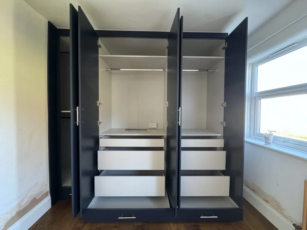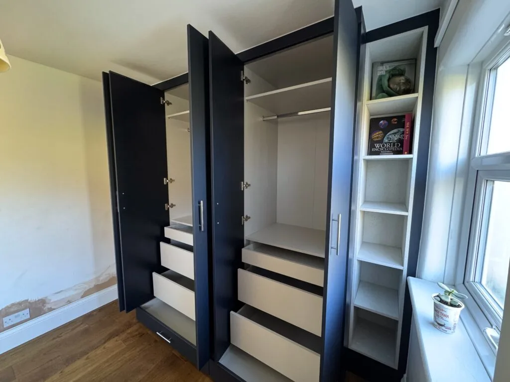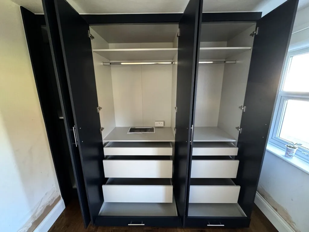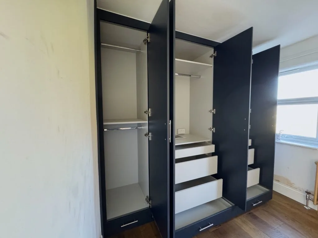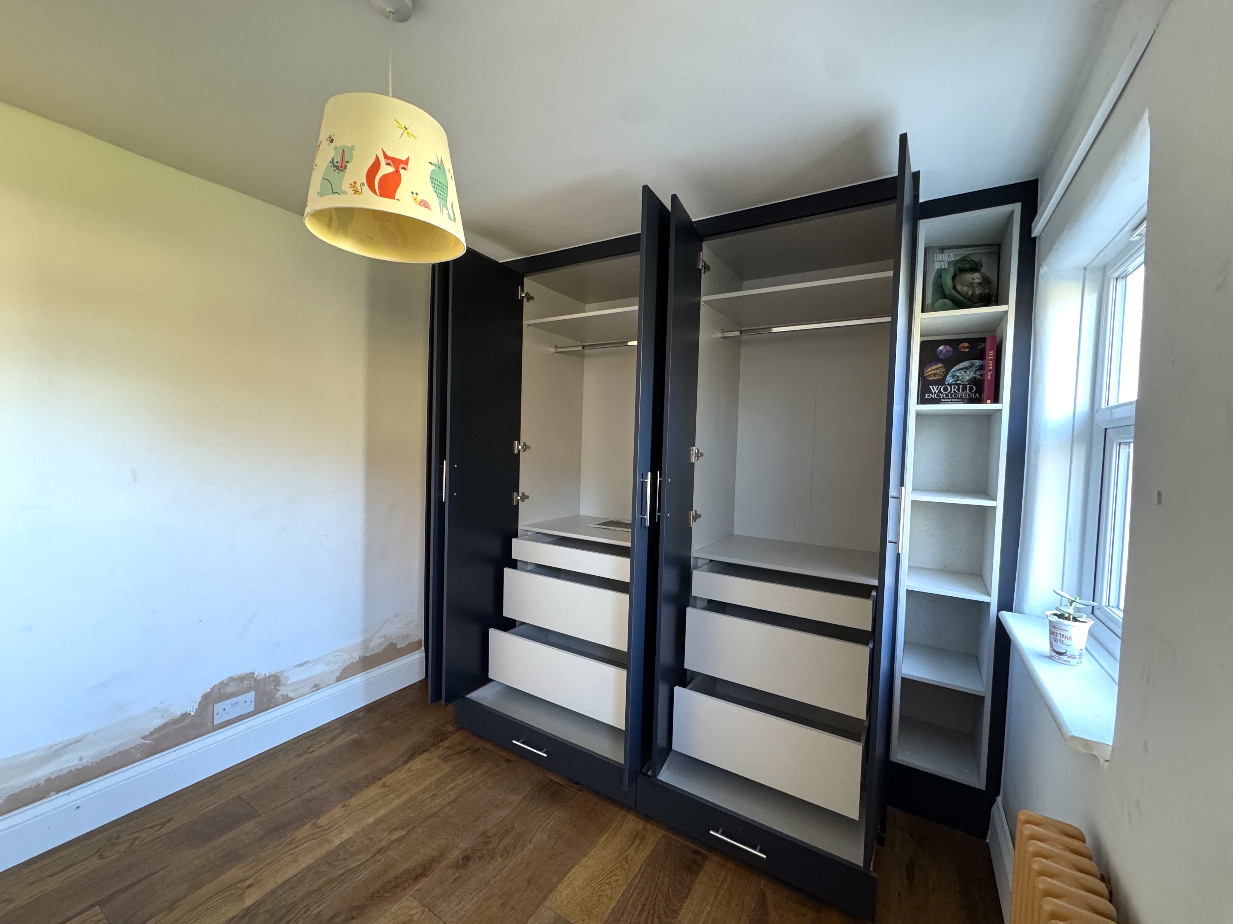 ⚡️Fitted Wardrobe Installation. The final touch was a made-to-measure fitted wardrobe, seamlessly integrated into the newly renovated space. Designed to match the aesthetic of the new flooring, this solution adds both style and practical storage.
