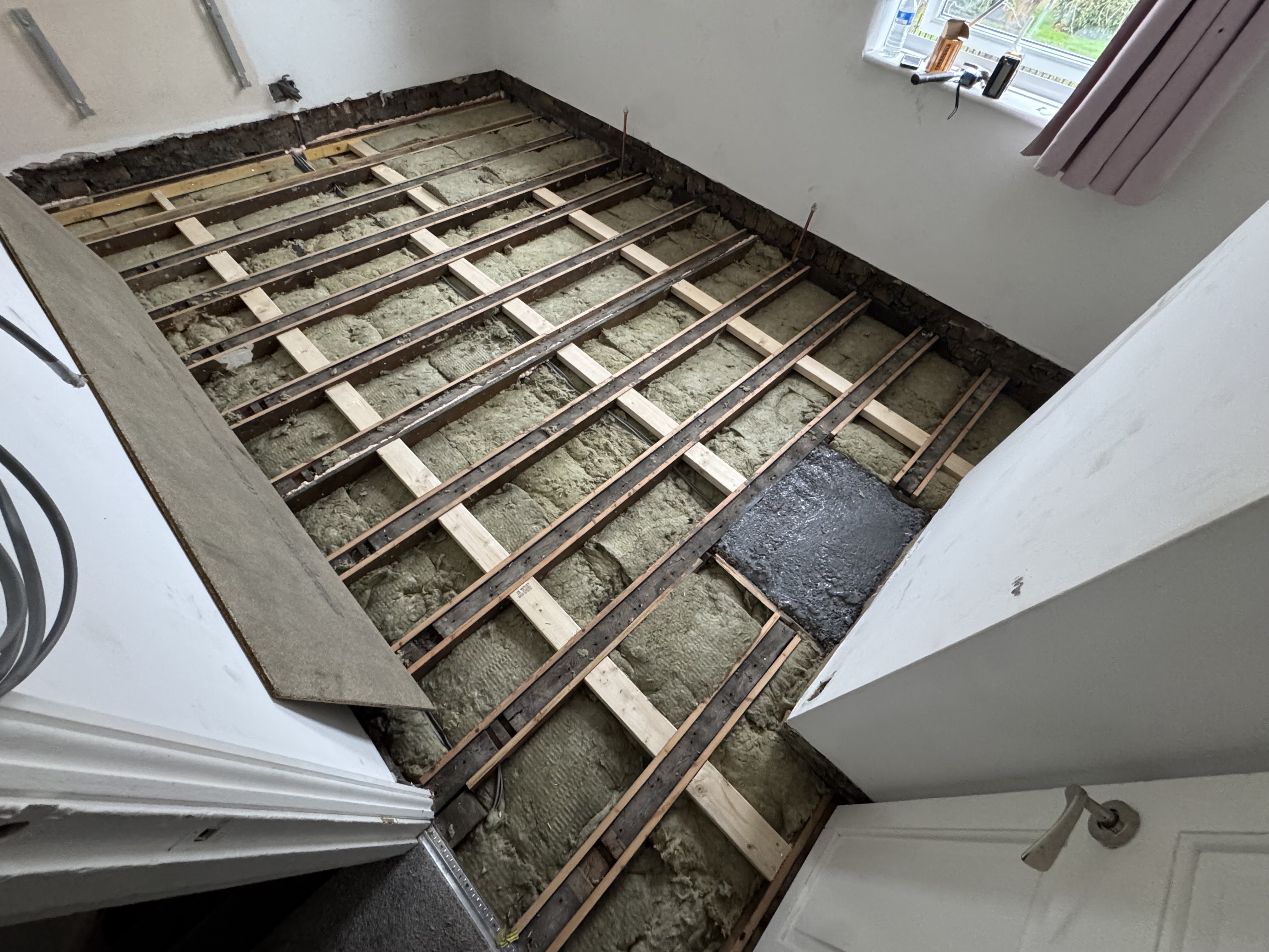 ⚡️Underfloor Insulation Installation. We fitted thermal and acoustic underfloor insulation to enhance energy efficiency and reduce noise. This step adds comfort to the home and can help lower energy bills in the long term.
