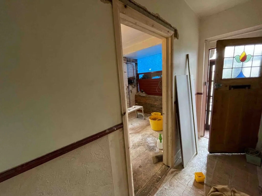 ⚡️Removal of the existing steal garage door out, cutting out the doorway in the wall for the new interior door installation inside the corridor in the house (so that customer could have access to the room from any side of the house);