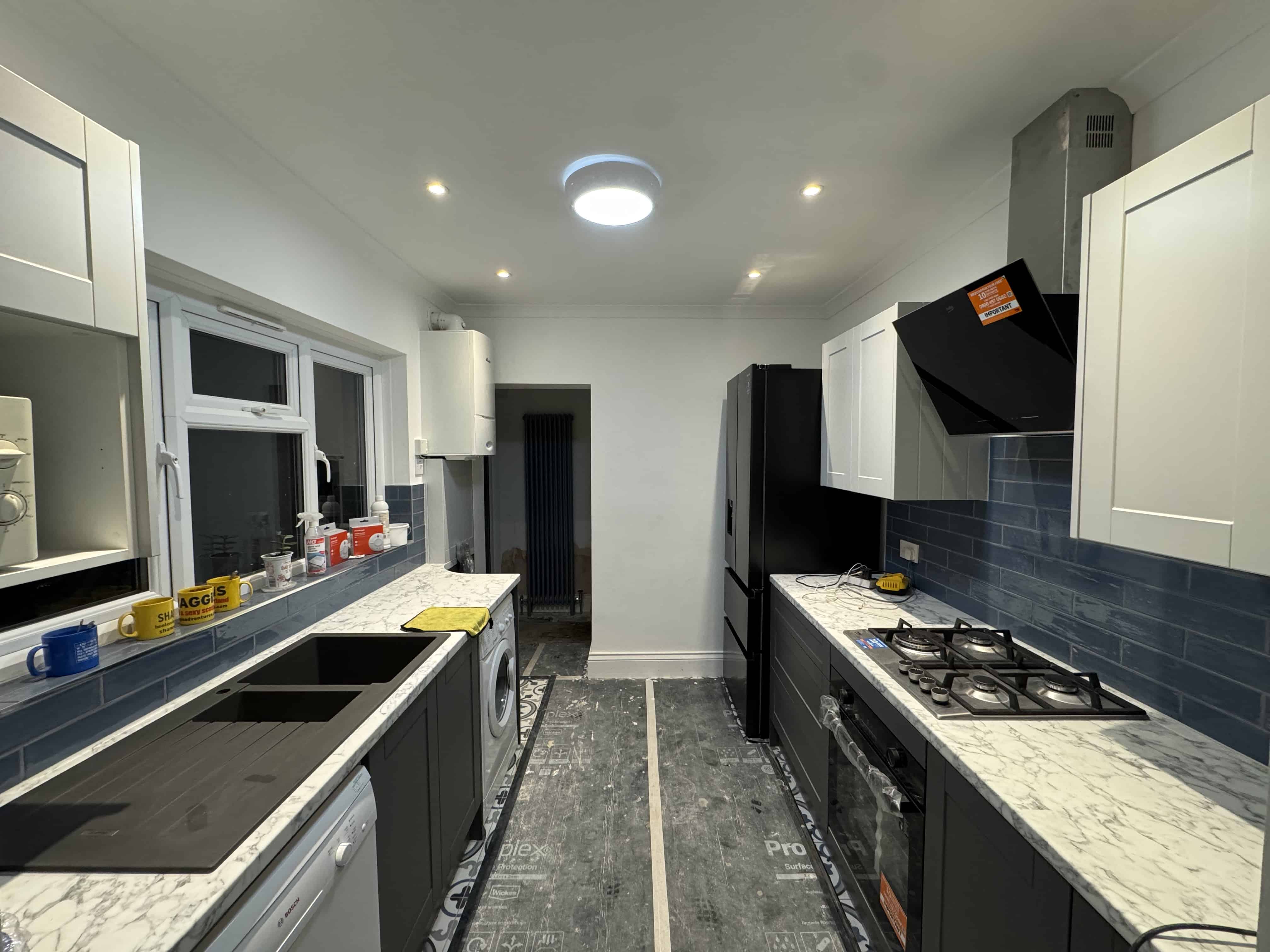 • Modern Fixtures and Fittings: The renovation included sleek handles, a stylish tap, and contemporary lighting fixtures, giving the space a polished finish.