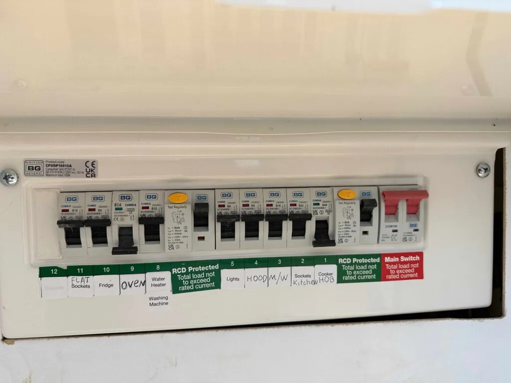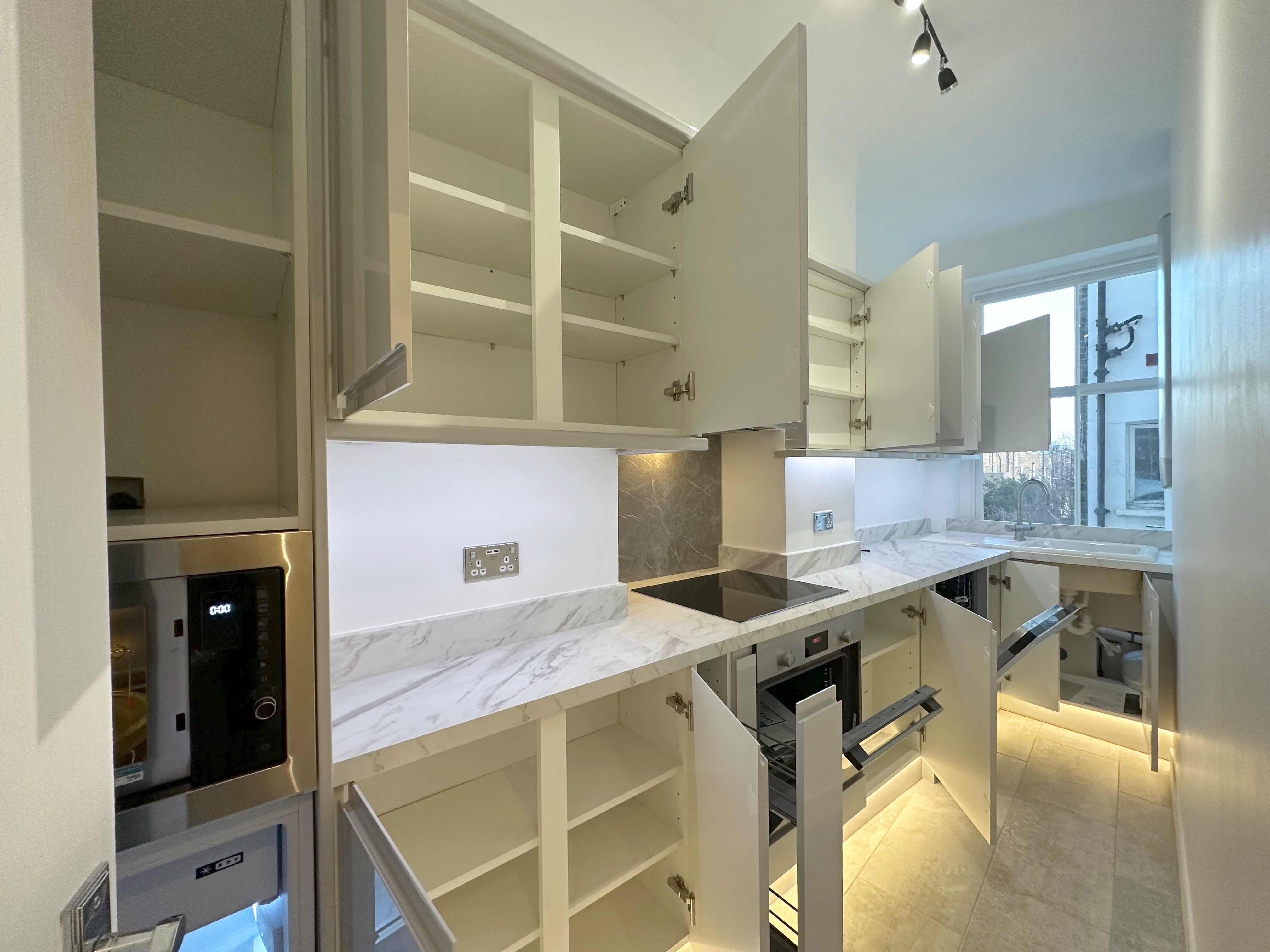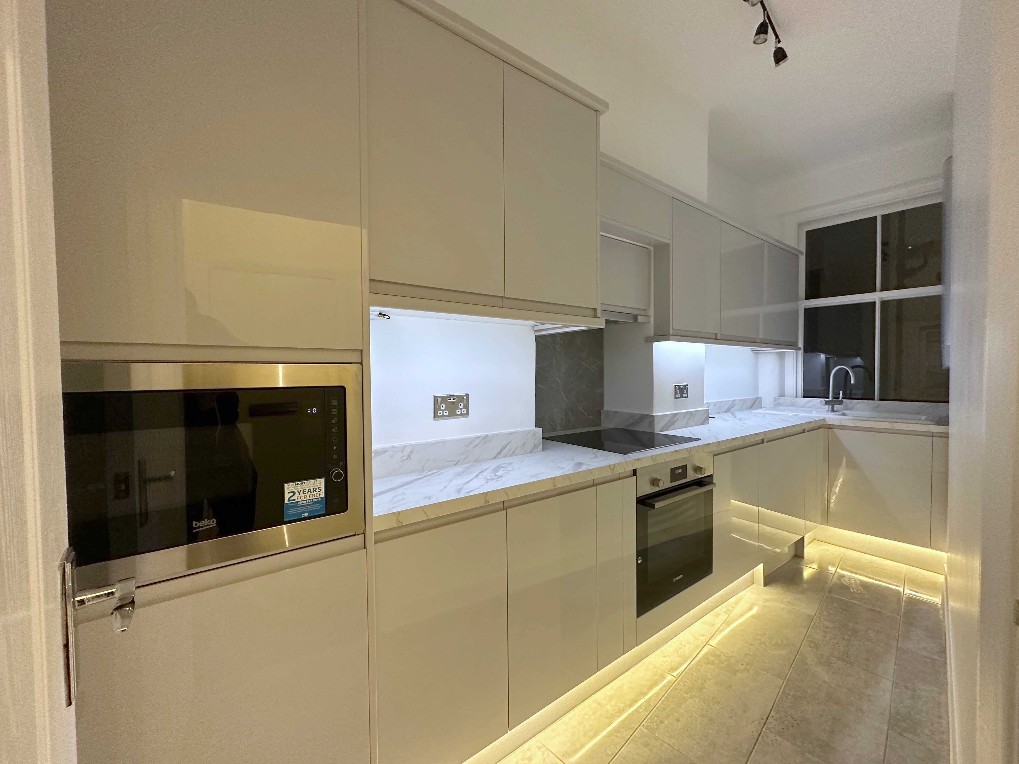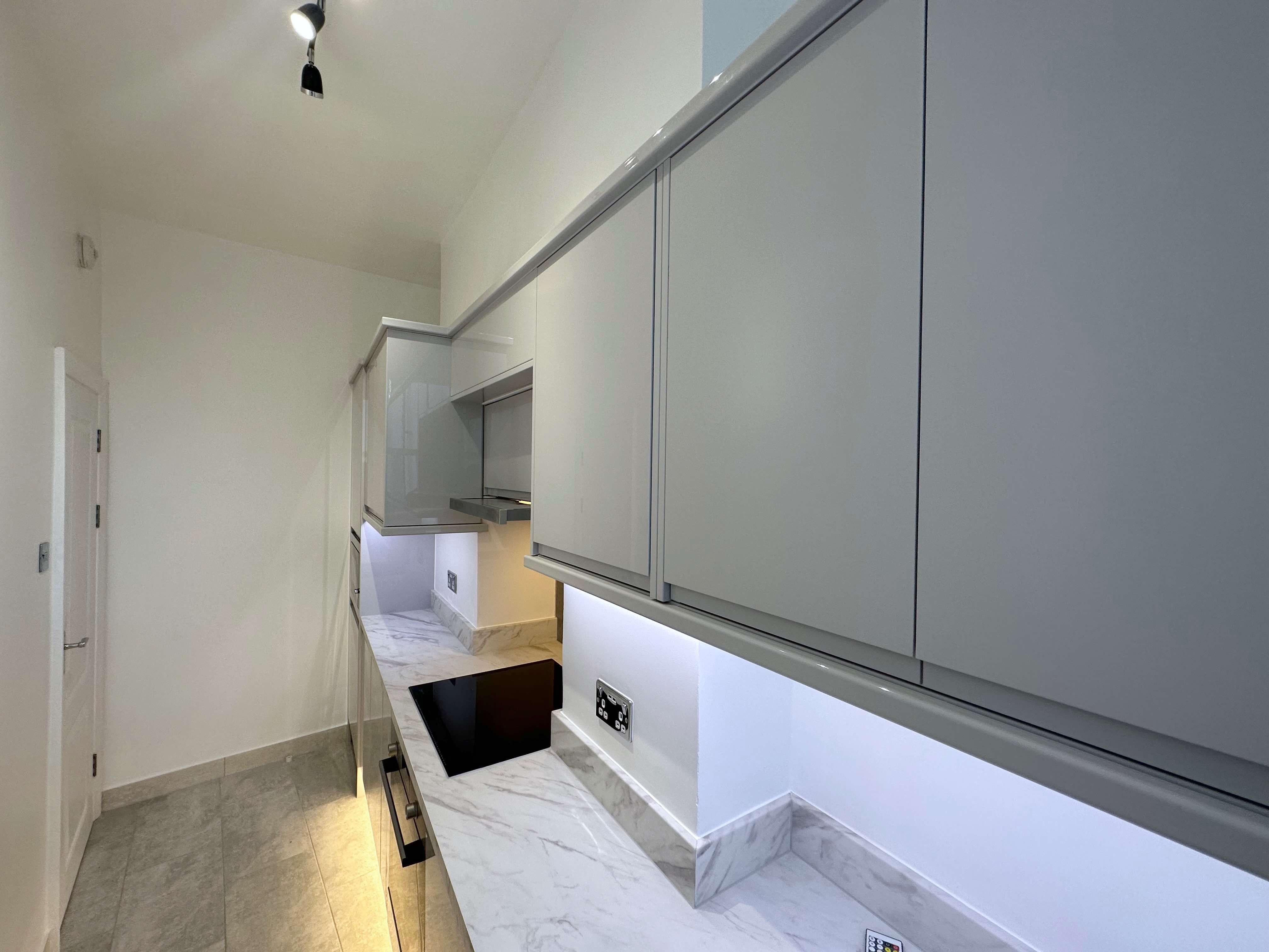 ⚡️ Creation of extra bespoke wall units around the wall above the induction hob in turn maximising the storage space while keeping design elegant and sleek. All aspects of the kitchen were integrated we also managed to install new consumer unit inside a kitchen cabinet thus maintaining a sleek look within the kitchen with straight lines.