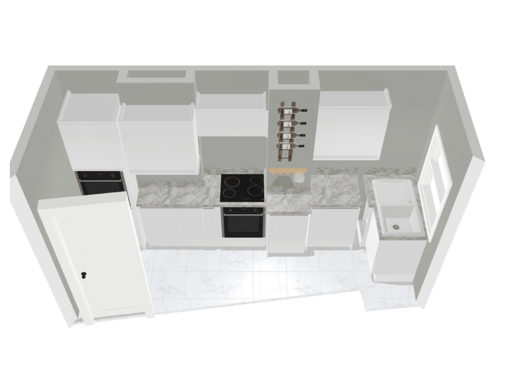 The layout of the existing kitchen was long but very narrow with limited space. However, our customer wanted to install the complete range of integrated appliances which included installation of dishwasher which is out of the design brochure.