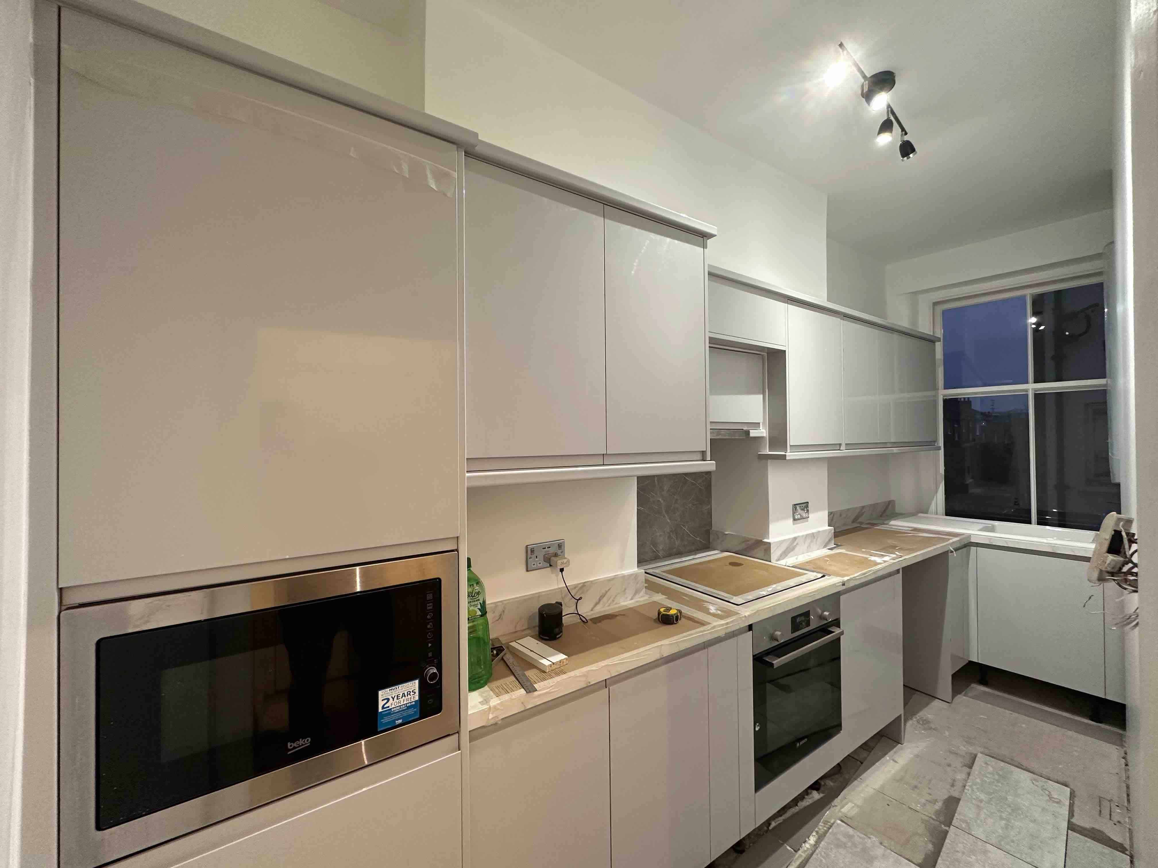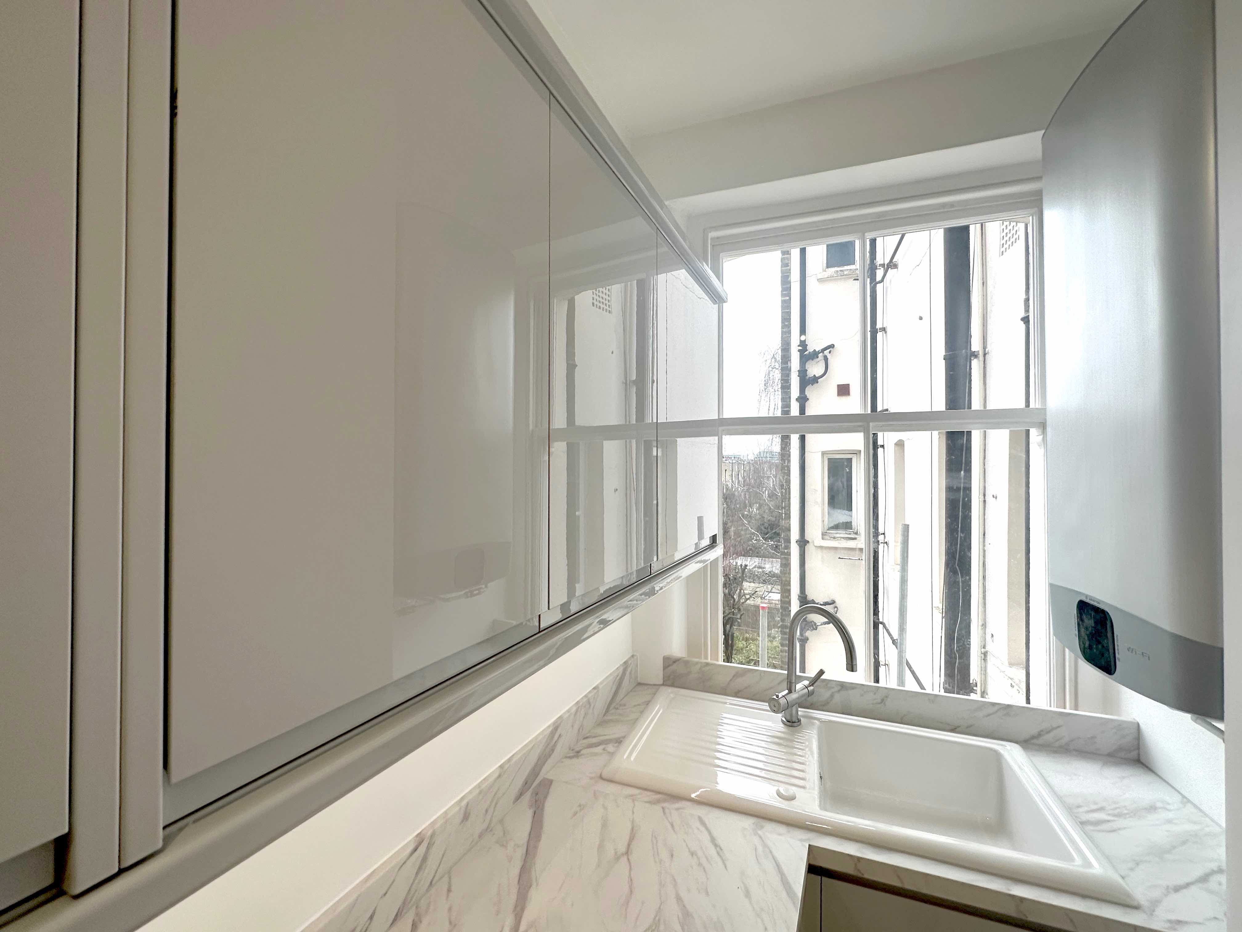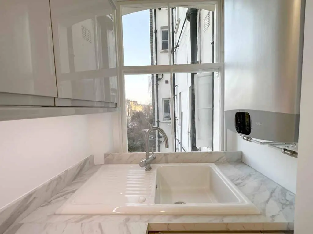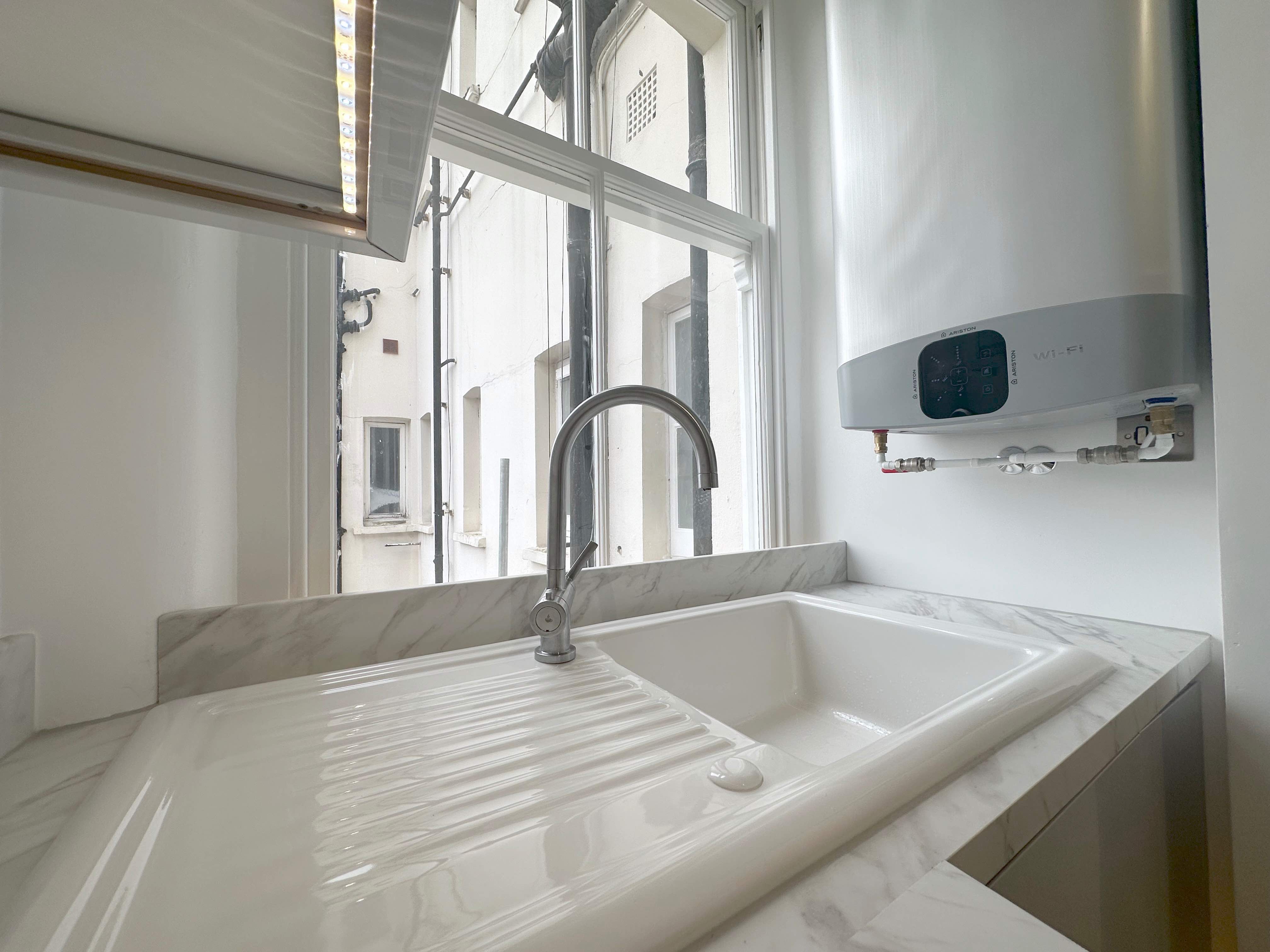 ⚡️Replumbing whole kitchen which including a Wi-Fi enabled Unvented Water Heater installation on the right hand wall to the window side, very slim heater matching shape of existing wall.