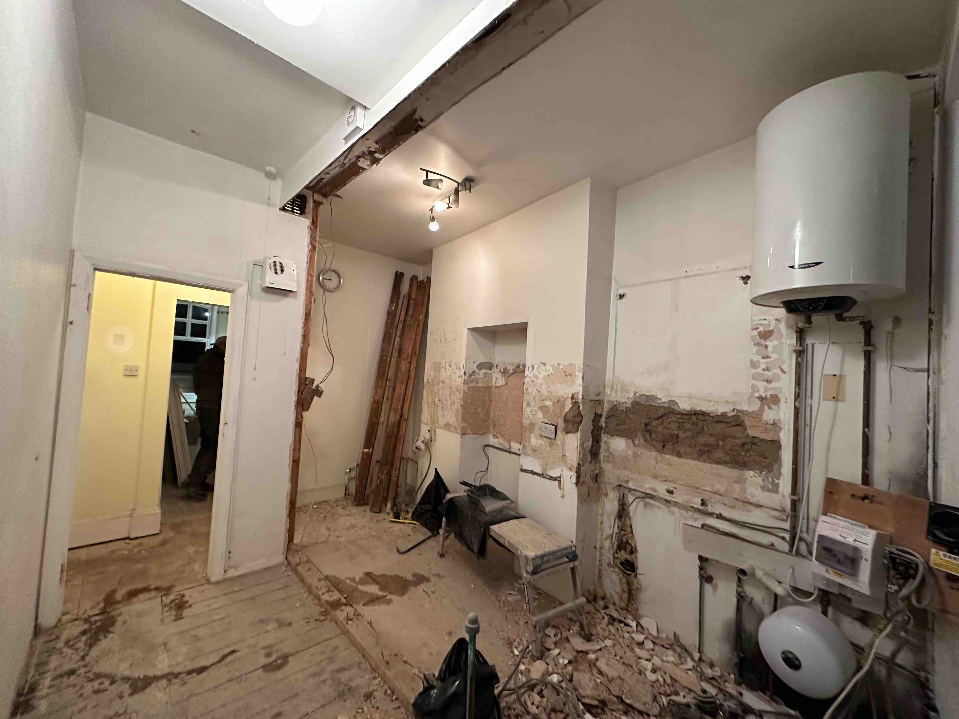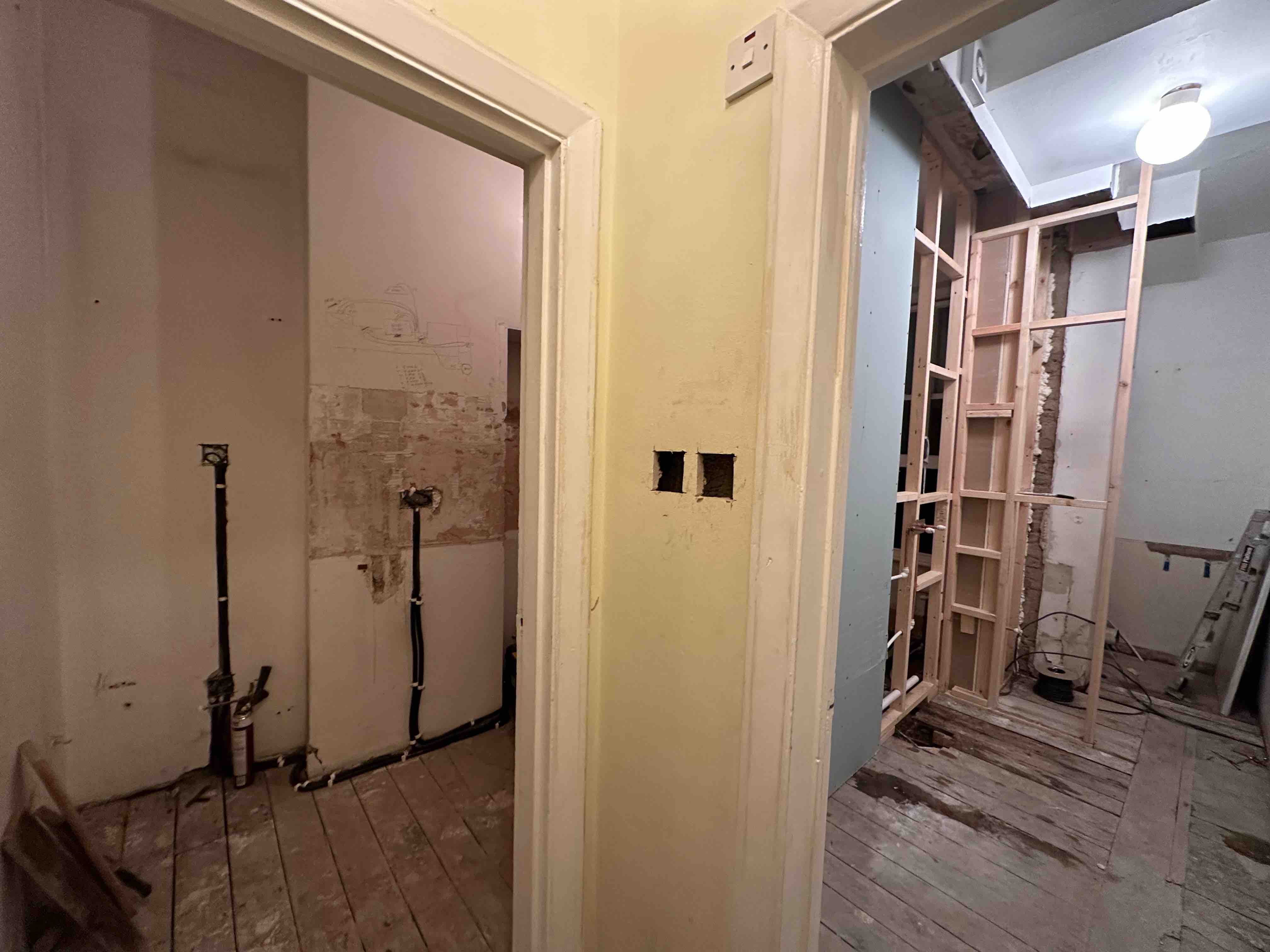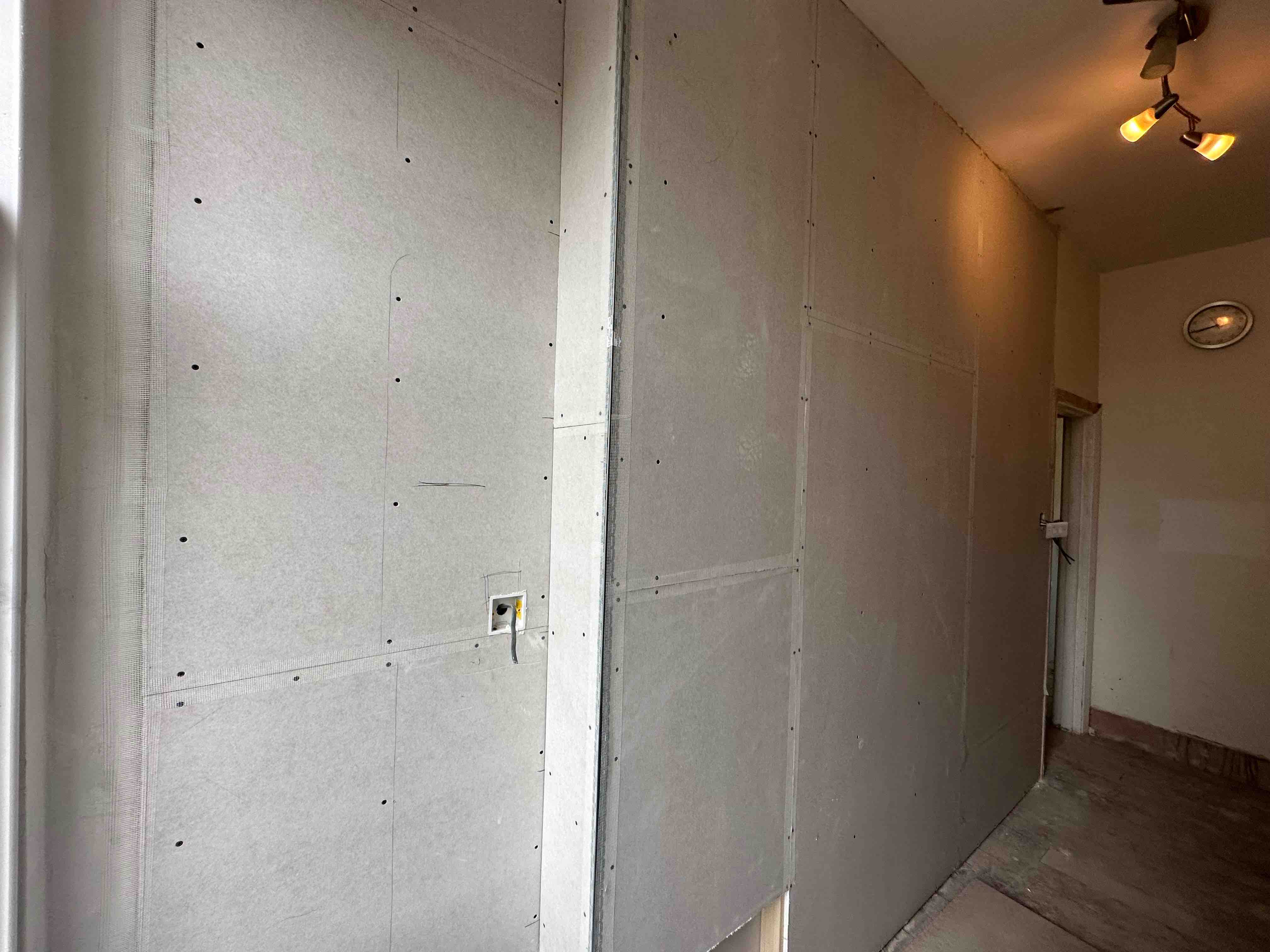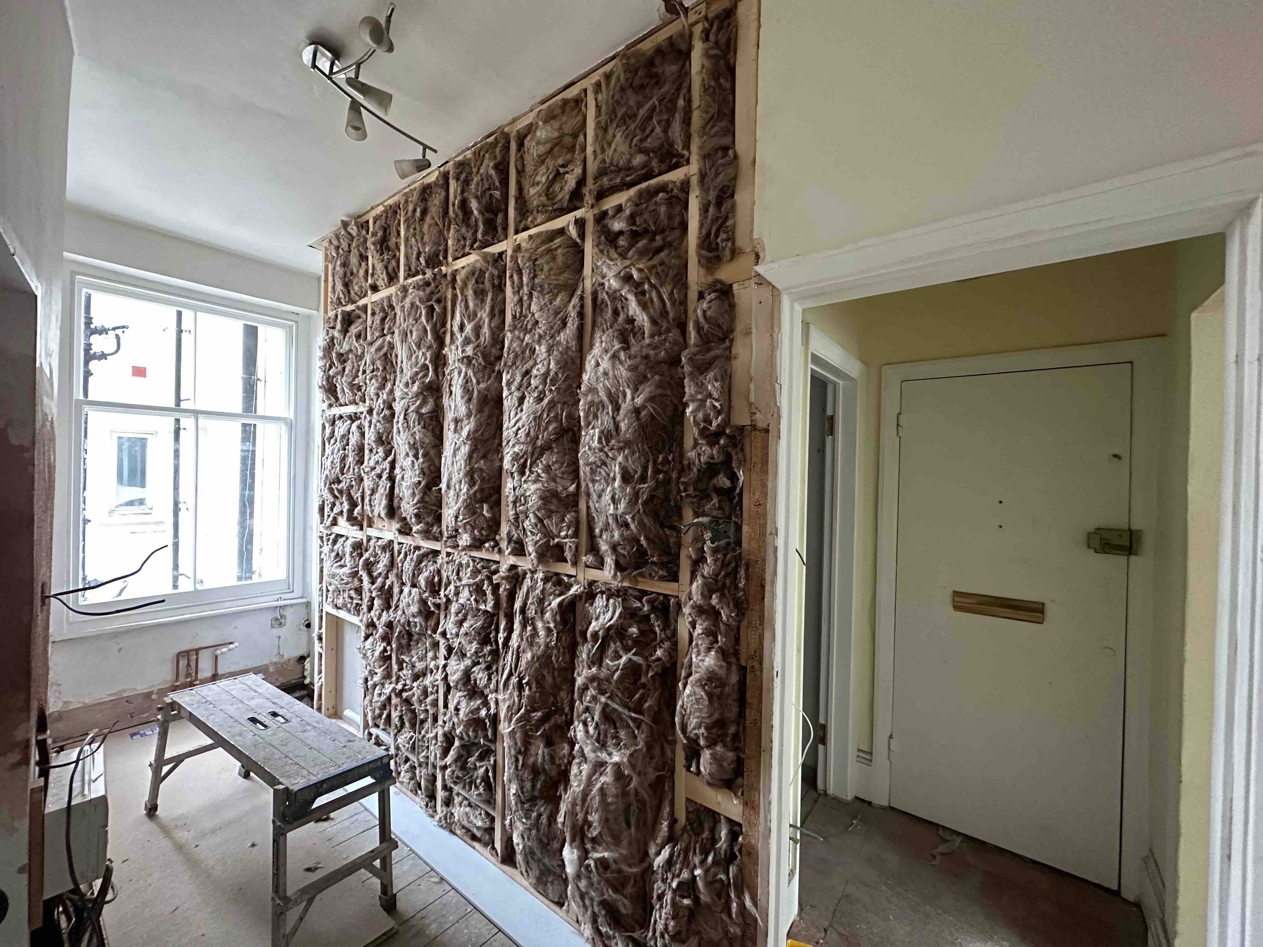 ⚡️Removal of old partition wall between kitchen and bathroom and build new insulated partition wall, by winning some space between kitchen and bathroom.