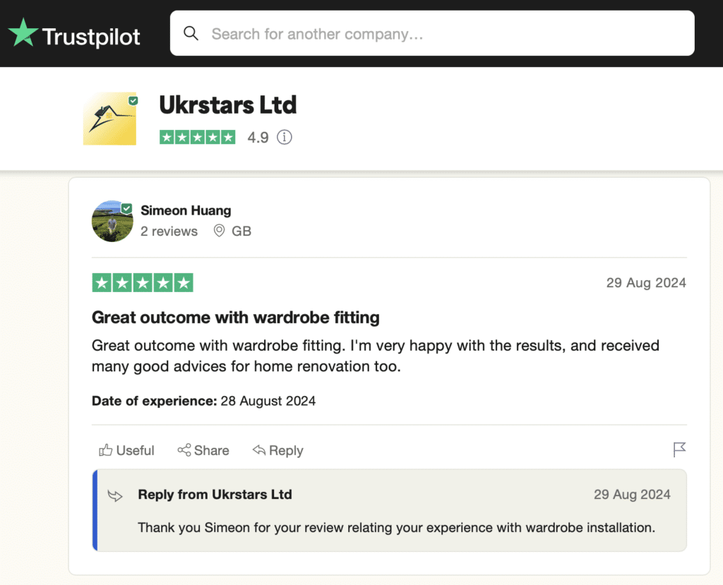 Made by measure wardrobe installation in SE10, London.