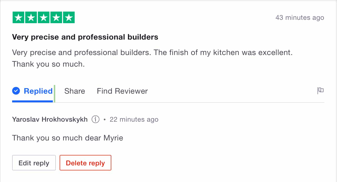 Firstly, I’d like to thank my team for the prompt and professional services provided and many thanks to B&Q Beckton responsive management for the quick and trustworthy dedication.