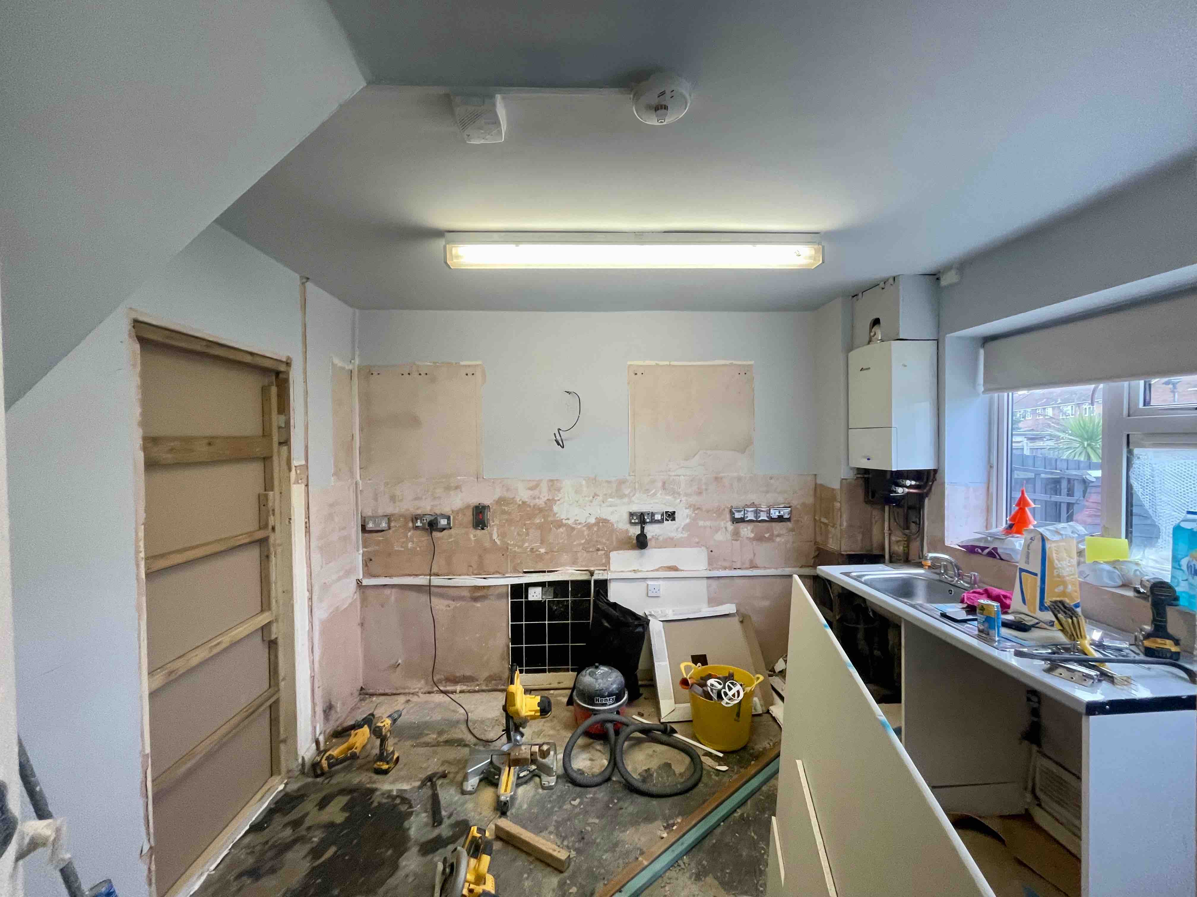 ⚡️ Created a fake wall by closing existing storage entrance door to the kitchen, plastered;