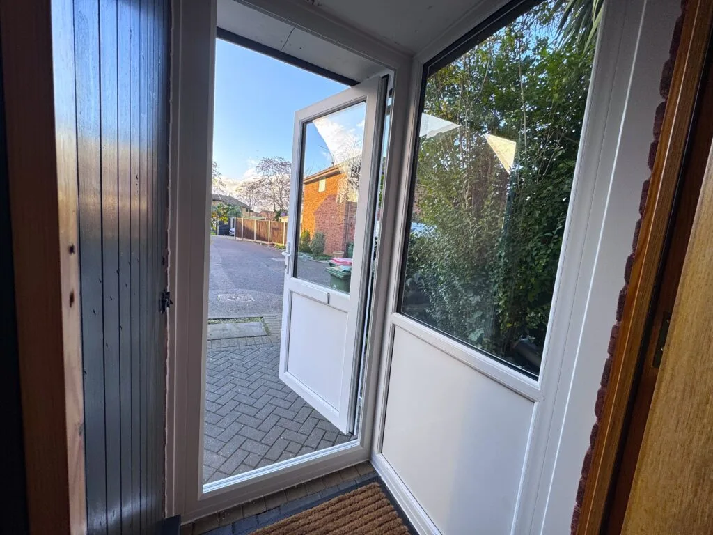 The completed porch now benefits from improved insulation, increased natural light, and a much cleaner, more contemporary appearance. The new glazing enhances both comfort and security while significantly upgrading the kerb appeal of the property. Internally, the porch feels brighter and more enclosed, creating a welcoming entrance space that performs far better year-round.
