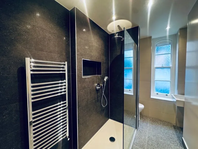 This Shoreditch bathroom renovation showcases our ability to combine technical expertise with contemporary design — creating a space that’s both functional and visually striking. Get your free, no-obligation cost estimate now.