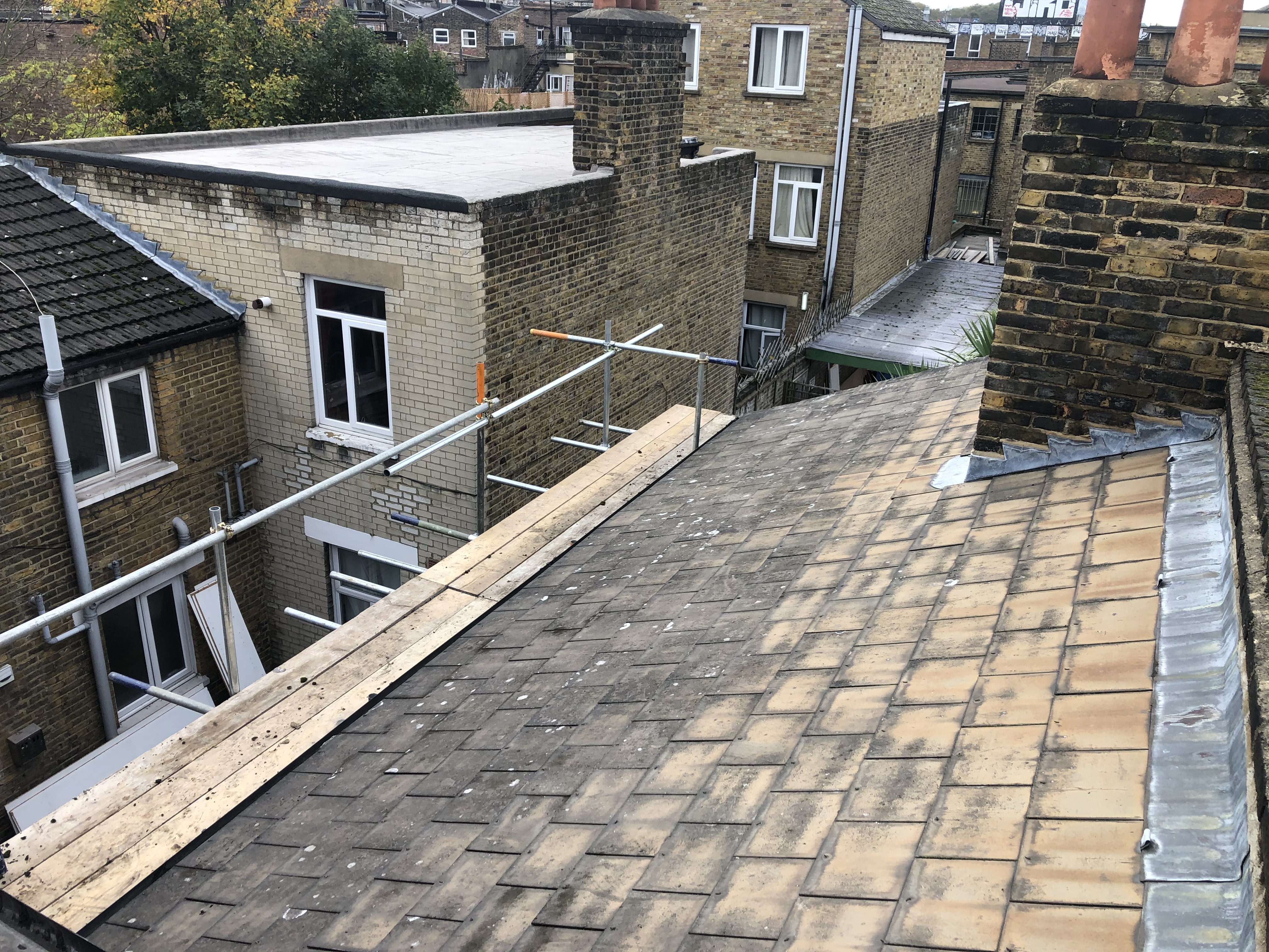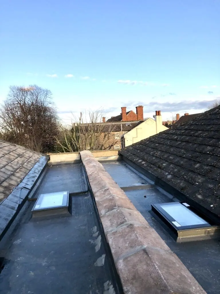 ✅ Installed new skylight and fibreglass flat roof, cleaned gutters and removed moss and algae from the tiles.