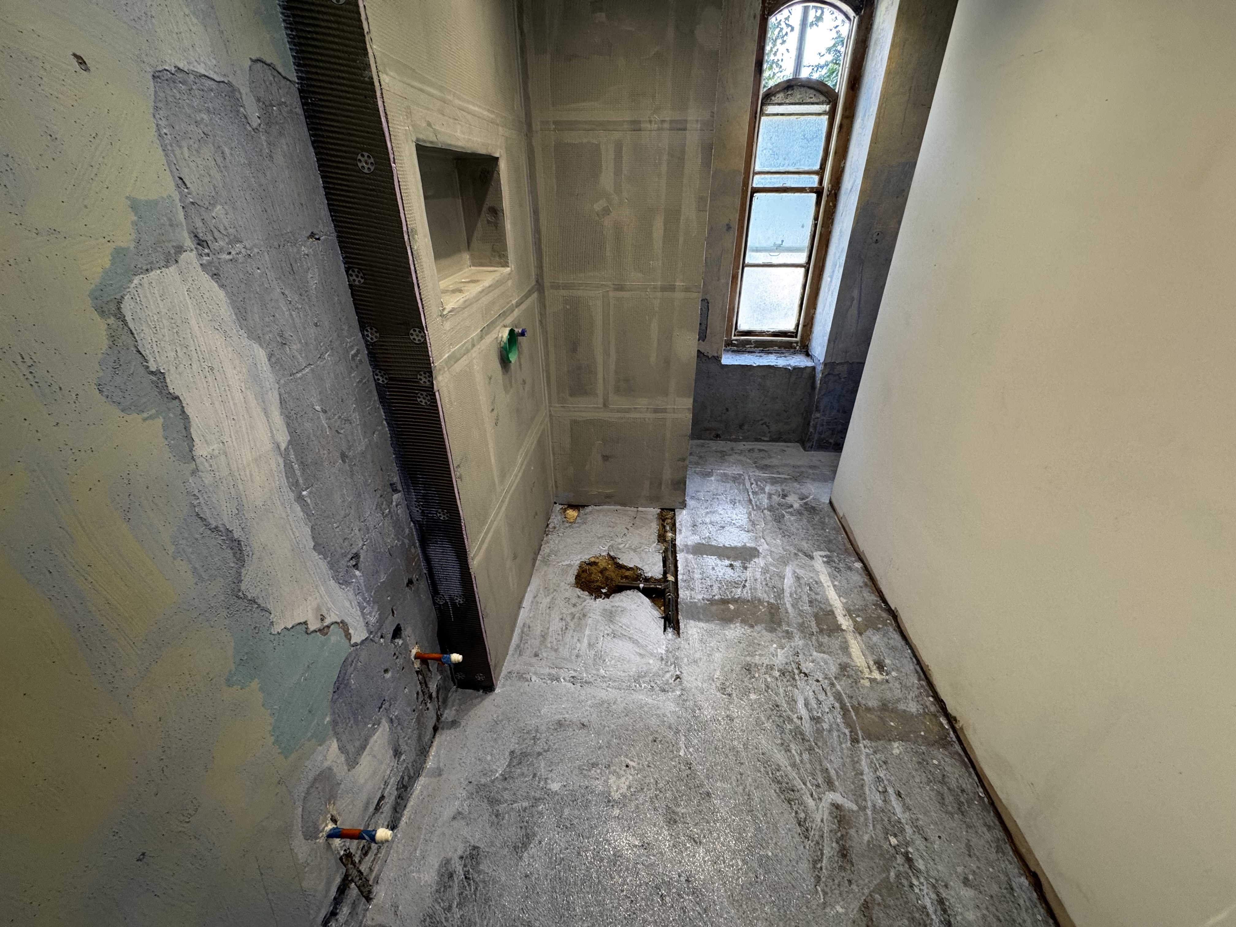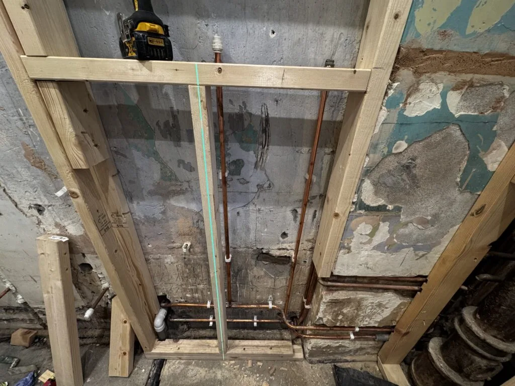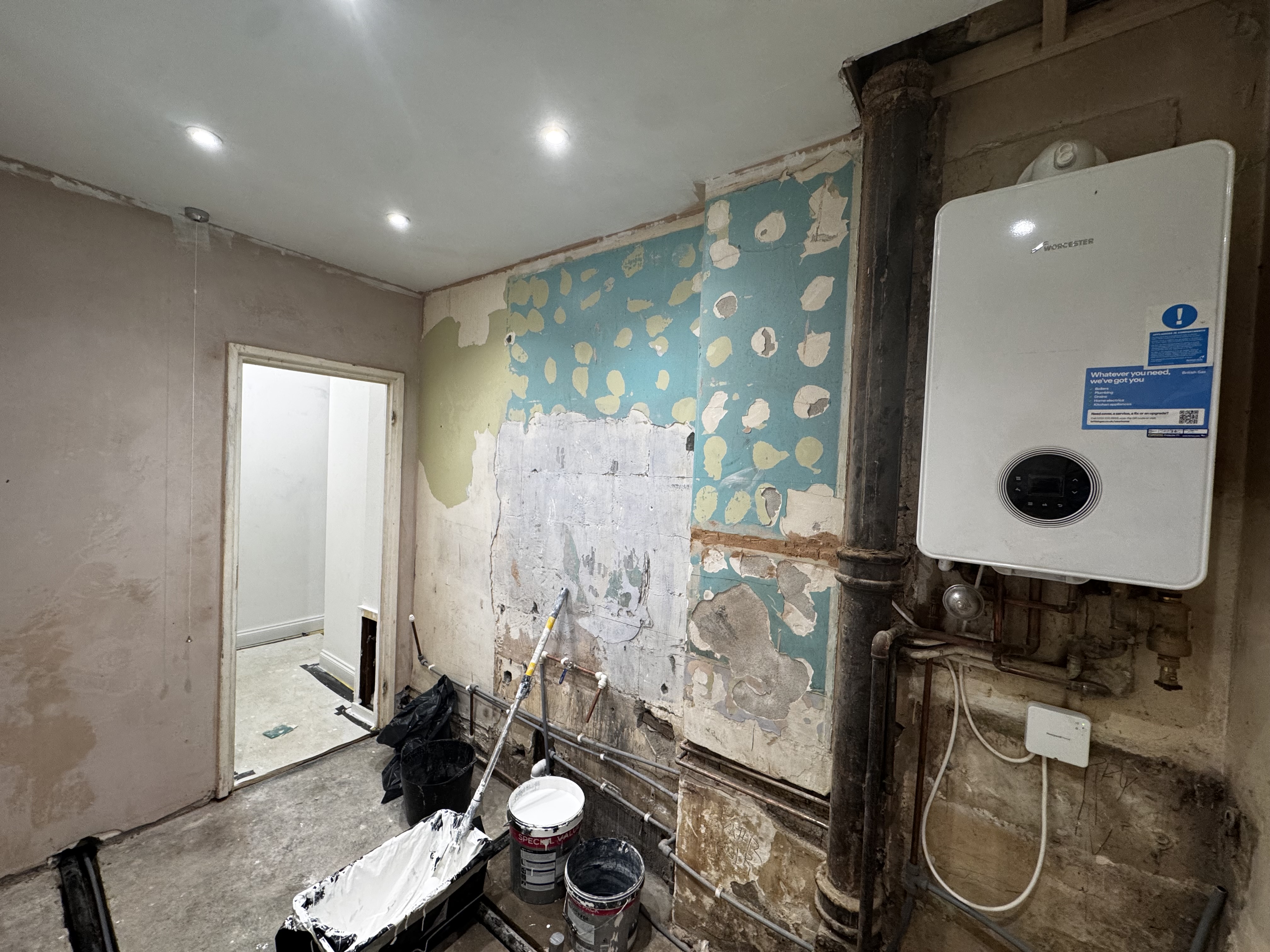 This completed project in October 2025 involved a complete transformation of a dated bathroom into a modern, functional, and stylish space wet room. Our team carried out a full refurbishment, starting with the installation of a new shower area, including a complete replumbing of the system to ensure long-term reliability and improved water pressure. Instead of plasterboard when walls created and expanded, we boarded with JACKOBOARDS before waterproofing completed.