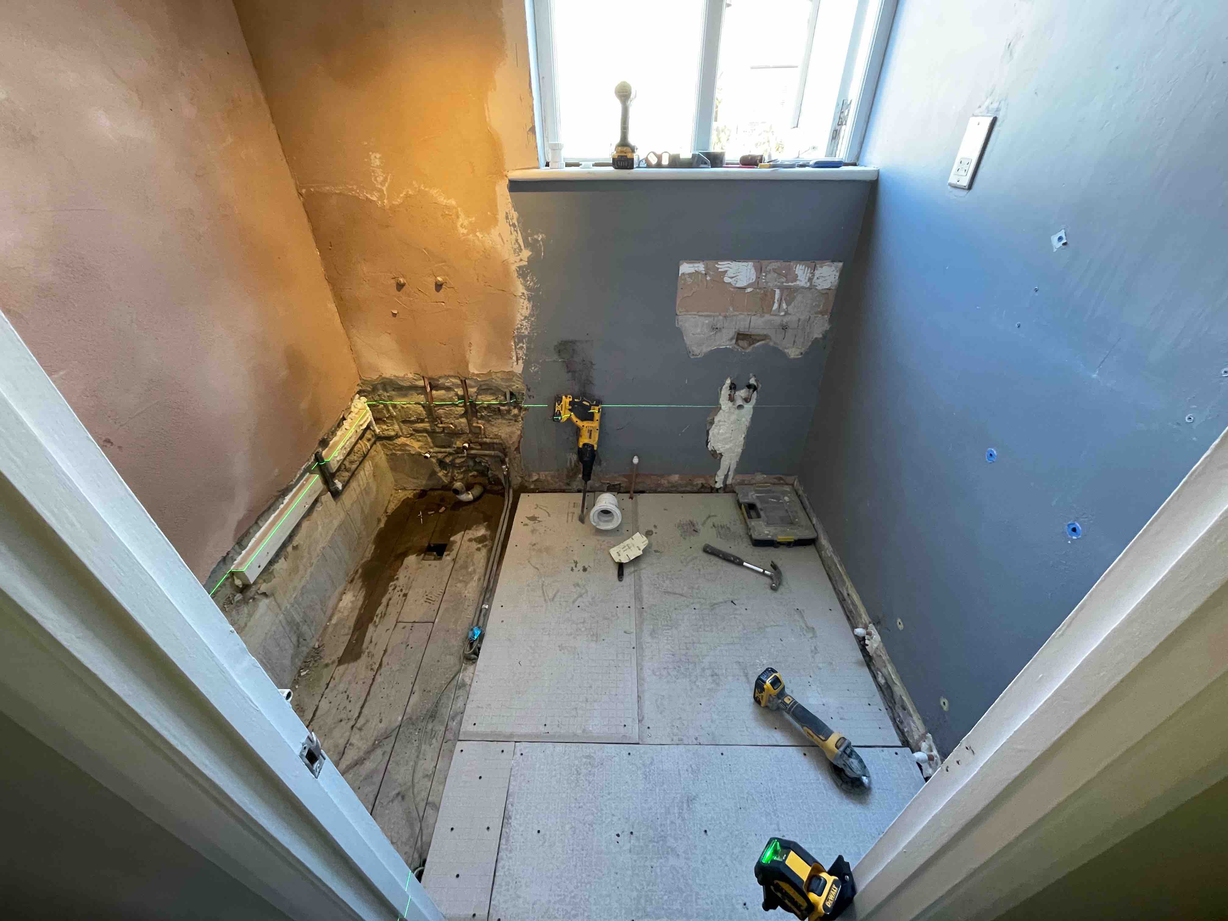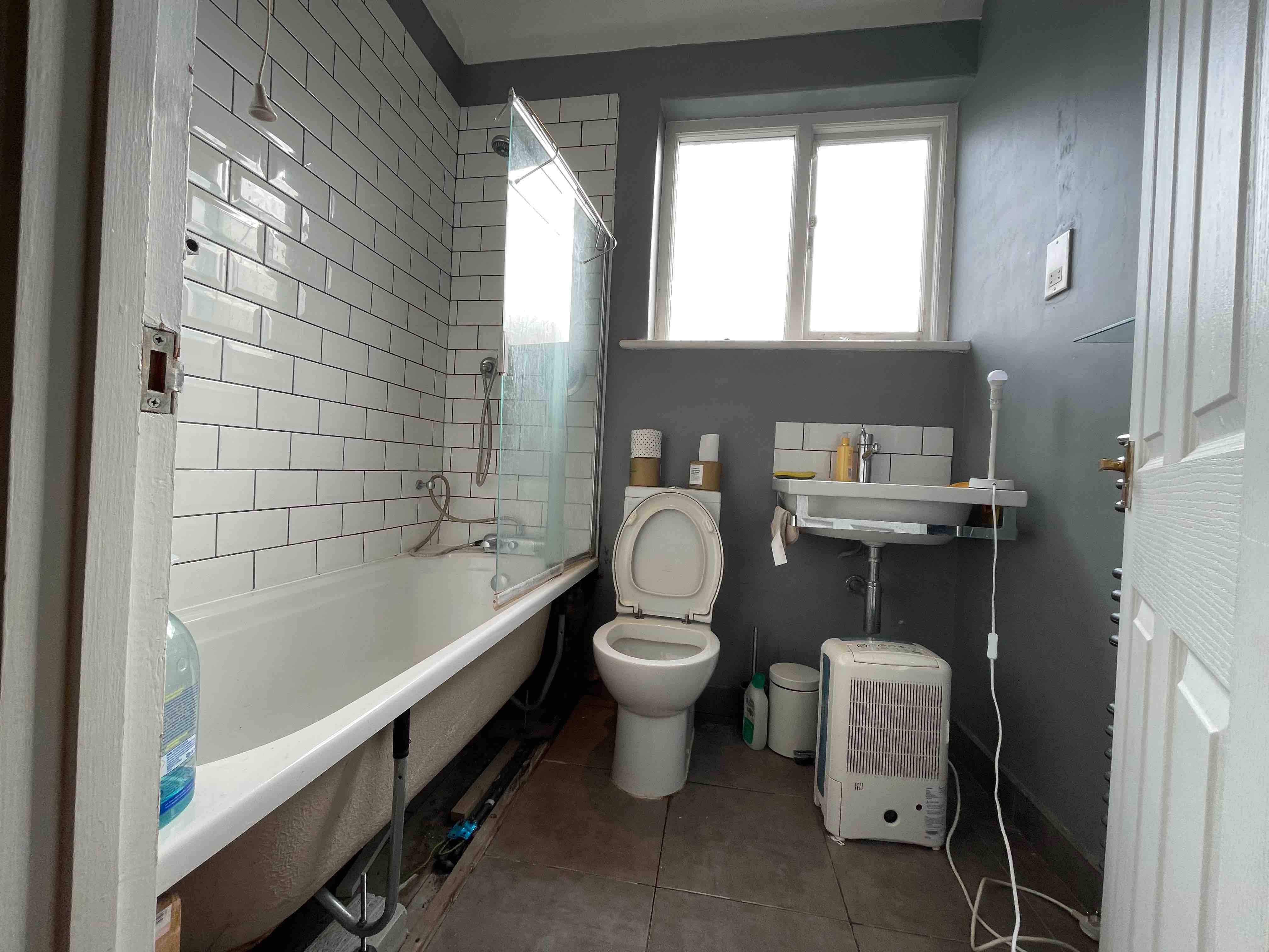 When we arrived for the first time, we took some photos for our website. This is how the bathroom was before and during renovation.