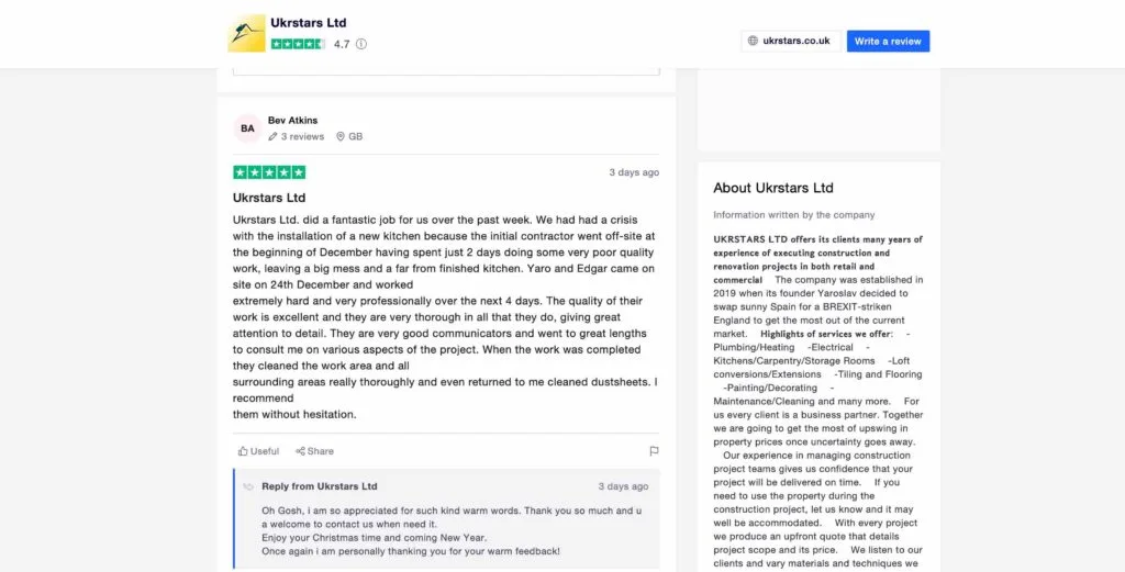 During this time, we were communicating with a client directly, updating him in detail on a daily basis without involving B&Q to save time and minimise stress to the client. I believe we finished our work in higher level standard and left customer happy with new kitchen installation before New Year Eve as promised.