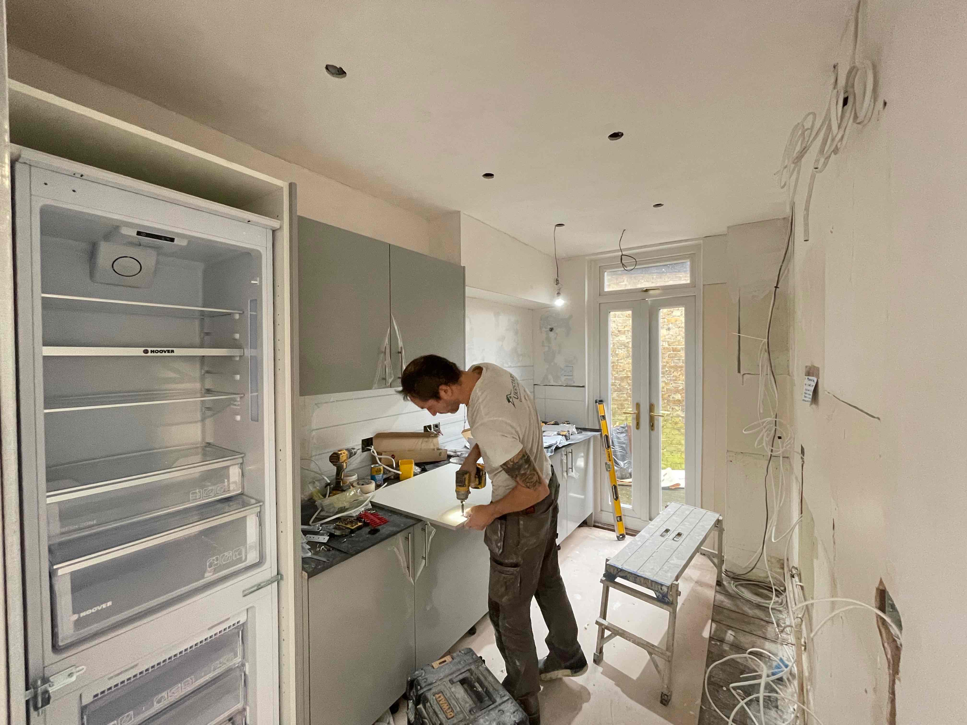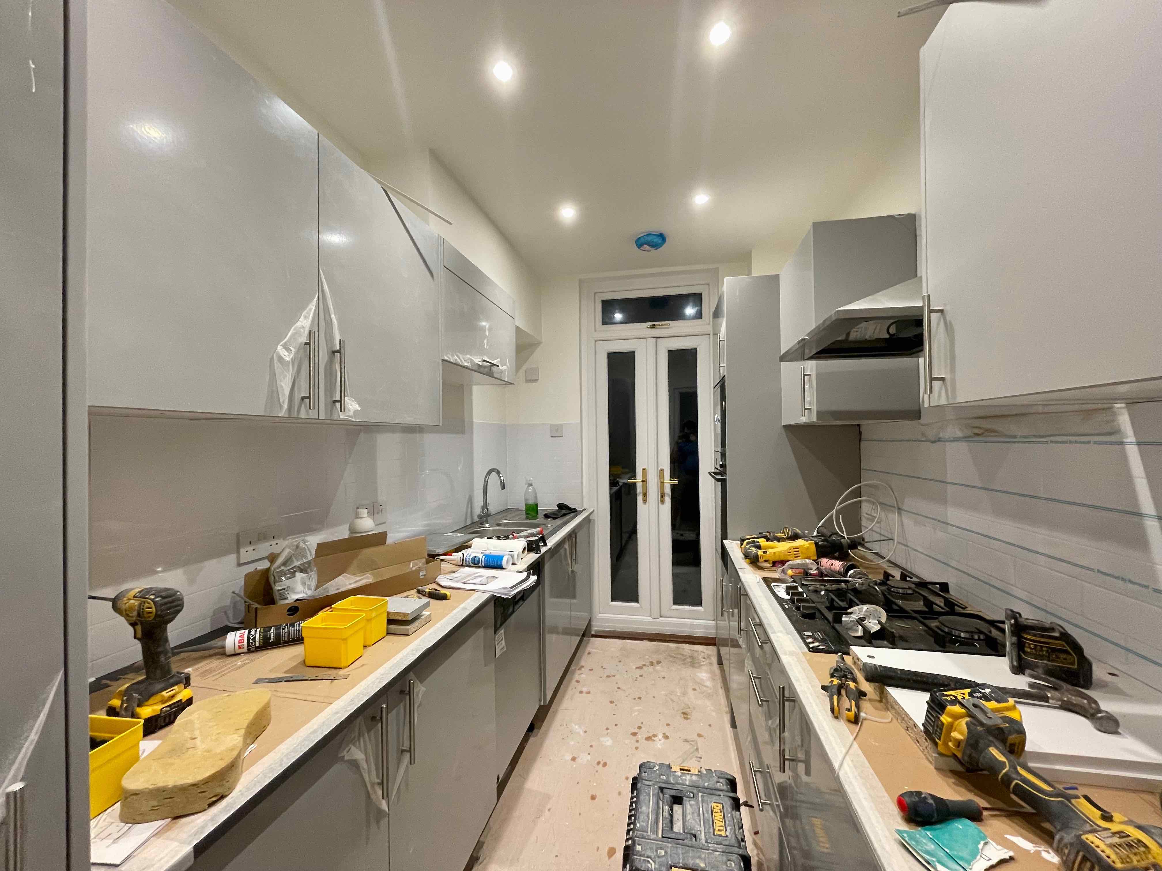 ⚡️ Fifteen kitchen units installation including integrated fridge and freezer, dishwasher, oven and microwave, it also included gas hob and hood installation;