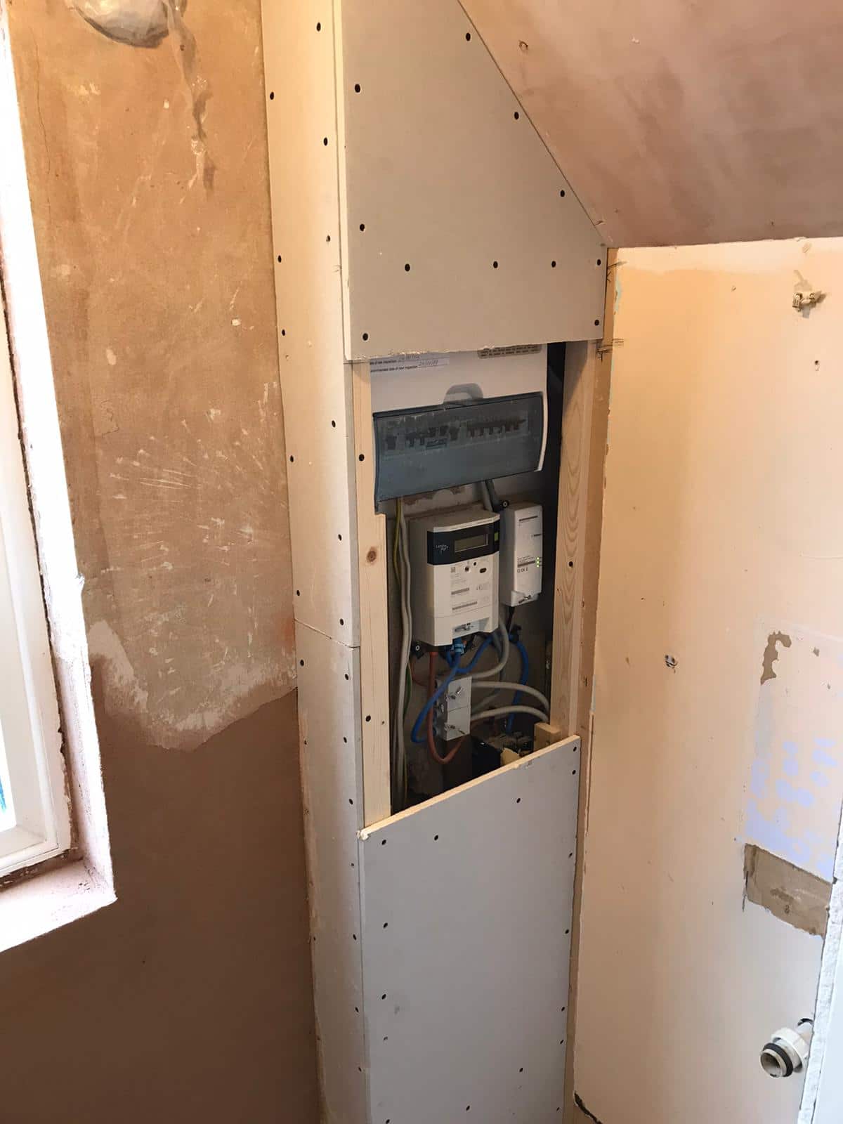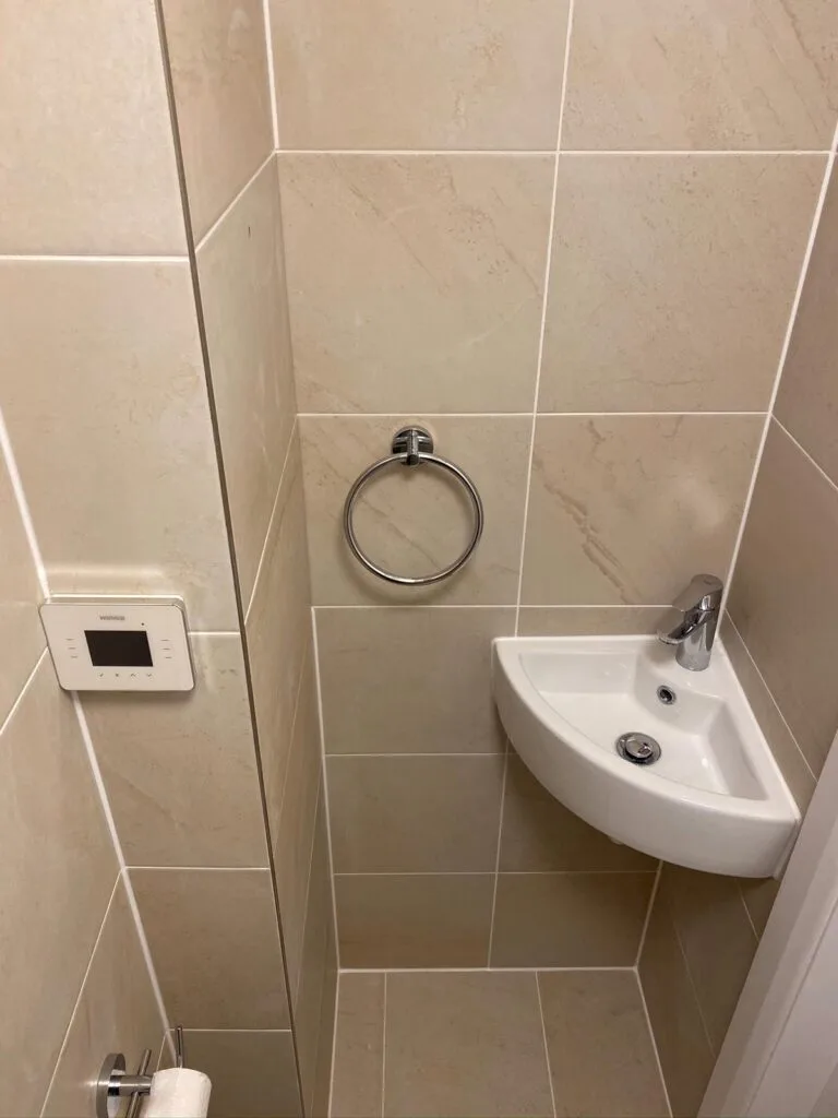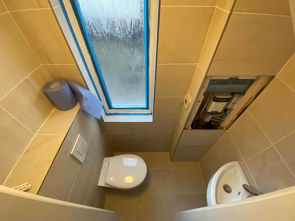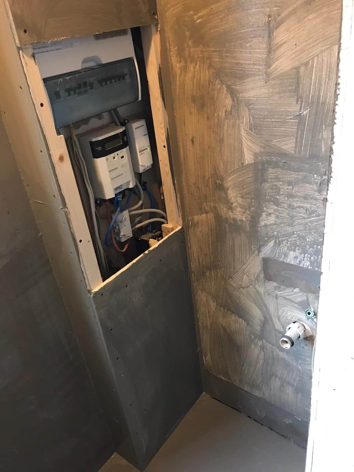 We optimised space with handcrafted installation of all equipment back to the place, boxed in the toilet, installed new electric meter box access panel, adding tiles and finished with few touches of fresh paint.